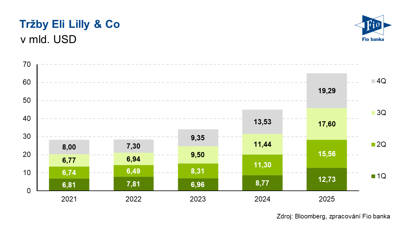 Klíčová slova: USA | Analytik | Akcie | Bloomberg | CEO | Dividendový výnos | Marže | P/E | Ukazatel | Výnos | Zisk na akcii | USD | Obchodování | Zisk | Výsledky | EPS | Analytika | Banka | Fio banka | Capital Markets | Cena | Fio | Markets | Signály | Trh | Cílová cena | Hrubá marže | ROCE | Spojené státy | Tržby | BMO Capital Markets | Agentura Bloomberg | Farmaceutické společnosti | Kapitalizace | Výhled | Konsensus | Očekávání | Akcie společnosti | Pokles cen | Čistý zisk | Generální ředitel | Hospodaření | Výsledky hospodaření | Pokles | Meziroční růst | Výdaje | Vývoj | Tržby společnosti | Růst | BMO | FDA | Eli Lilly | LLY | Novo Nordisk | Růst tržeb | Pokles tržeb | Výhled na rok | Akcie Eli Lilly | Divize | Podíl na tržbách | Společnosti | Společnost | Výsledky společnosti | 3М | Vice | Vývoj tržeb | Wegovy | Novo | Hubnutí | ProCent | Capital | Očištěný zisk na akcii | Prodeje | Výzkum a vývoj | Fio banka, a.s. | Zdraví | Rok 2025 | Michal Bárta | Diabetes | Mounjaro | Akcie společnosti Eli Lilly | Rok 2026 |