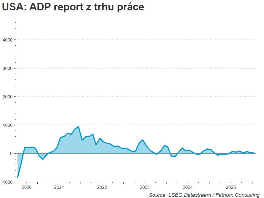 Počet nových pracovních míst podle ADP reportu v květnu klesl na 37 tis. oproti revidovaným 60 tis. v dubnu. Trhy očekávaly 114 tis. nově vytvořených pracovních míst. -