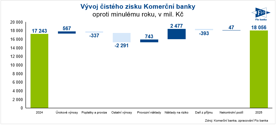 Za celý rok 2025 tak Komerční banka dodala čistý zisk téměř 18,1 mld. Kč.