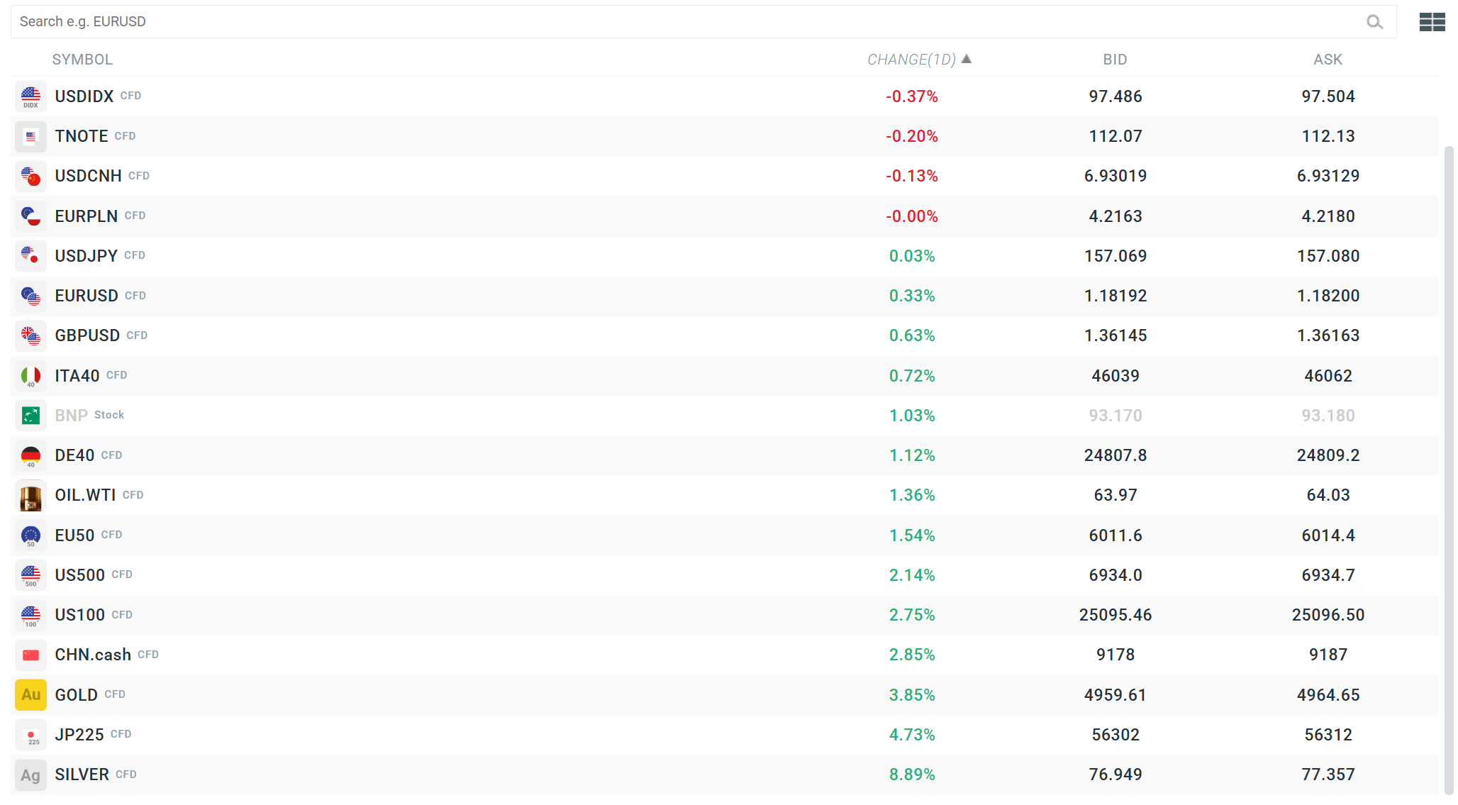 Denní shrnutí: EURUSD vzrostl o 0,5 %, Nasdaq100 vede zisky na Wall Street
