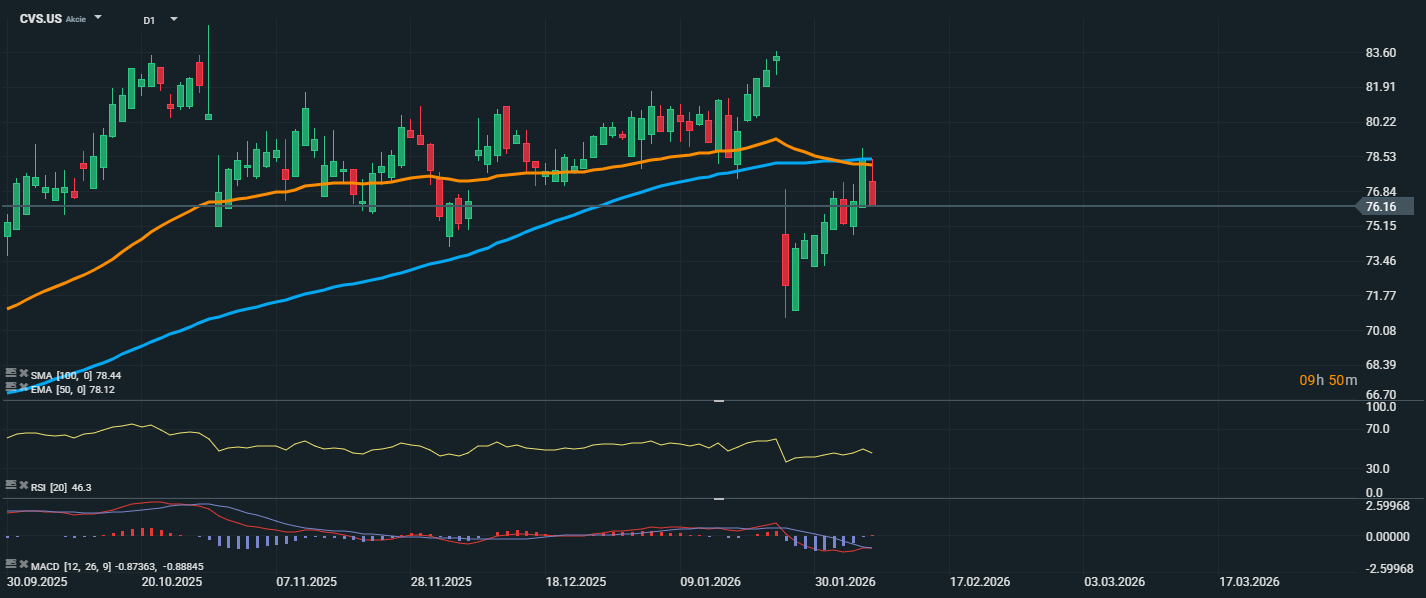 Od začátku roku akcie CVS klesly zhruba o 4,5 %, zatímco index S&P 500 si připsal přibližně 1,7 %. Výsledky za 4. čtvrtletí ale ukazují, že CVS je v relativně lepší kondici než velká část konkurence – zisk 1,09 USD na akcii a tržby 105,7 mld. USD překonaly očekávání trhu.