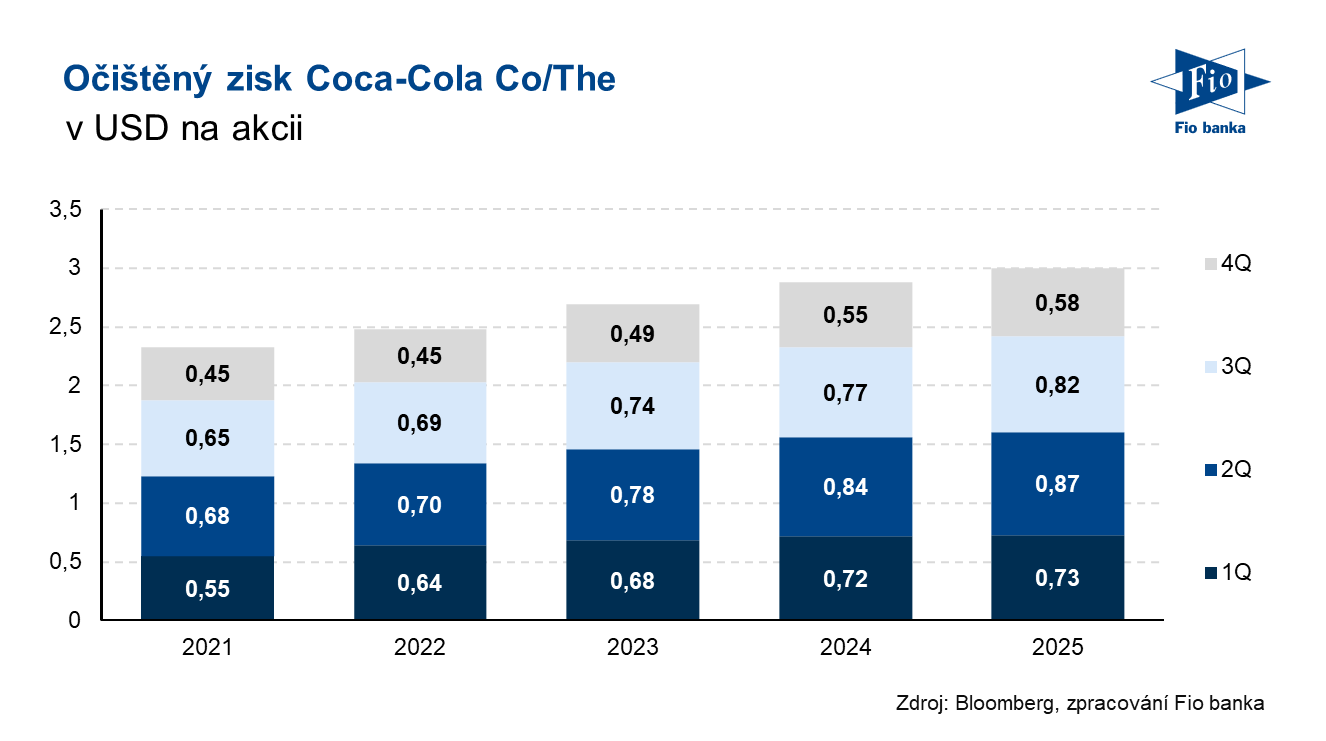Klíčová slova: Analytik | Akcie | Bloomberg | CAPEX | Dividendový výnos | Marže | P/E | Ukazatel | Výnos | Zisk na akcii | Analytici | USD | Zisk | Výsledky | EPS | Analytika | Banka | Fio banka | Cena | Fio | Fiskální rok | Trh | Cílová cena | Provozní marže | ROCE | Tržby | Evercore ISI | Kapitalizace | Výhled | Konsensus | Odhady trhu | Kapitálové výdaje | Čistý zisk | Objem | Generální ředitel | Hospodaření | Výsledky hospodaření | Pokles | Výdaje | Vývoj | Růst | Coca-Cola | Vývoj akcie | KO | Společnosti | Společnost | Výsledky společnosti | Celoroční výhled | 3М | Jakub Němec | Evercore | Struktura | Očištěný zisk na akcii | Prodeje | Společnost Coca-Cola | Fio banka, a.s. | Nový generální ředitel | Rok 2026 |