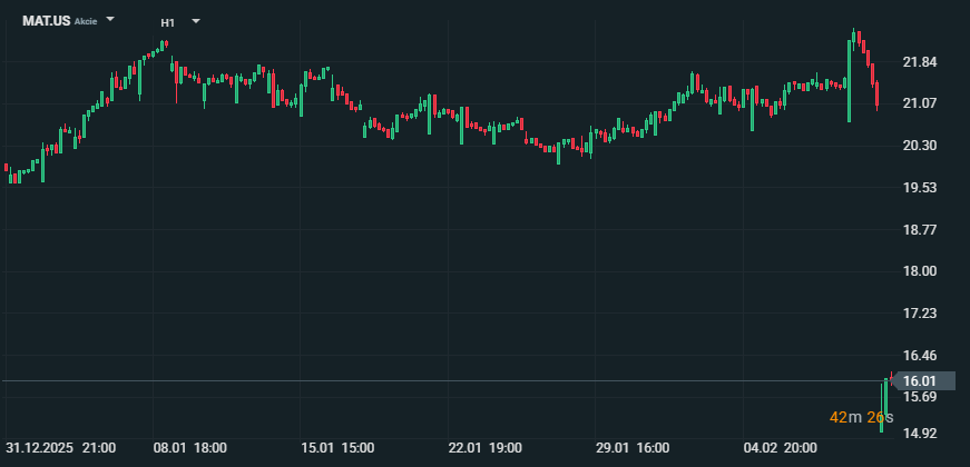 Akcie společnosti Mattel, Inc. se během jediného dne propadly téměř o 25 %, což představuje jeden z nejvýraznějších poklesů za poslední roky. Výprodej následoval po zveřejnění slabšího výhledu, který vyvolal obavy ohledně vývoje spotřebitelské poptávky, řízení zásob a tlaku na marže před klíčovým maloobchodním obdobím.