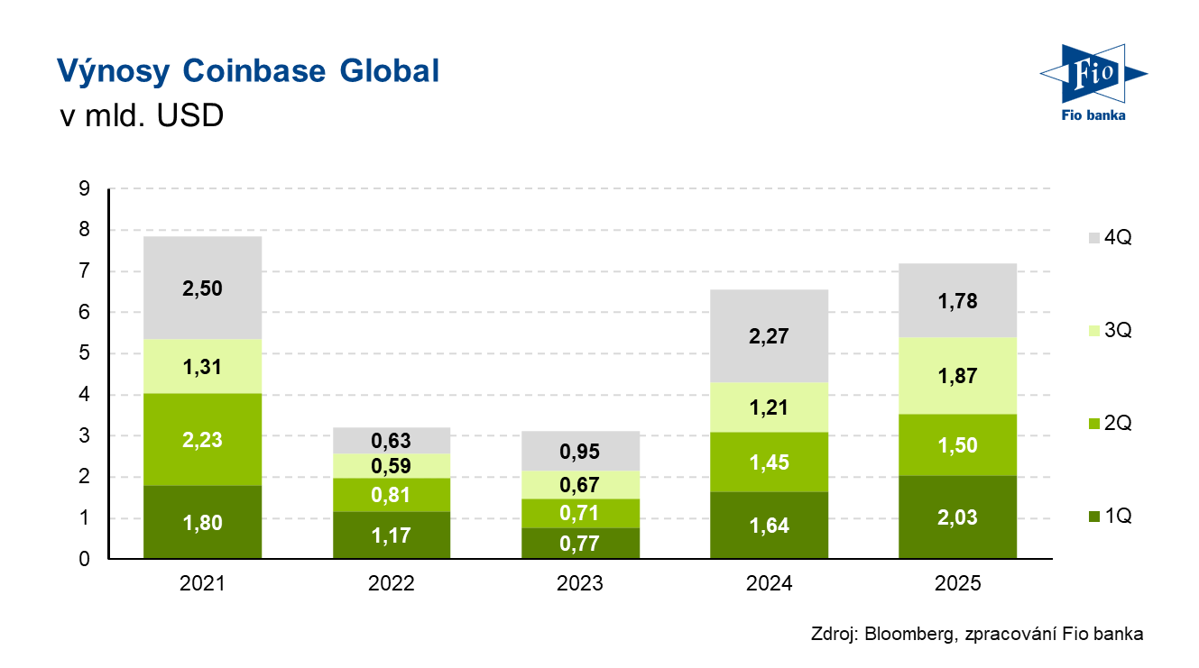 Klíčová slova: Akcie | Bloomberg | Burza | CEO | Dividendový výnos | P/E | Ukazatel | Výnos | Wall Street | Zisk na akcii | Zisk na akcii (EPS) | Analytici | USD | Obchodování | Zisk | Výsledky | EPS | Banka | Fio banka | Cena | Fio | Obchodování se zlatem | Trh | Tržní podíl | Cílová cena | EBITDA | ROCE | Kapitalizace | Výhled | Konsensus | Výnosy | Očekávání analytiků | Očekávání | Coinbase | Objem obchodování | Odhady analytiků | Stablecoiny | Očekávání trhu | Čistý zisk | Kryptoměnová burza | Objem | Firma | USDC | Pokles | Zisk EBITDA | Vývoj | Růst | Očištěný čistý zisk | ONE | Coinbase Global | Burza Coinbase | Kryptoměnová burza Coinbase | Vývoj akcie | Akcie třídy A | COIN | Akcie Coinbase | Cíle | Příležitosti | Prodej | Vyšší úroveň | Provozní náklady | Společnosti | Brian Armstrong | Společnost | Výsledky společnosti | Coinbase (COIN) | 3М | Vývoj objemu | CEO společnosti | Vice | Očištěný zisk na akcii (EPS) | Očištěný zisk na akcii | Služby | Akcie třídy | Fio banka, a.s. | Rok 2025 | Rekordní úroveň | Náklady | Rok 2026 | Marek Krejčiřík |