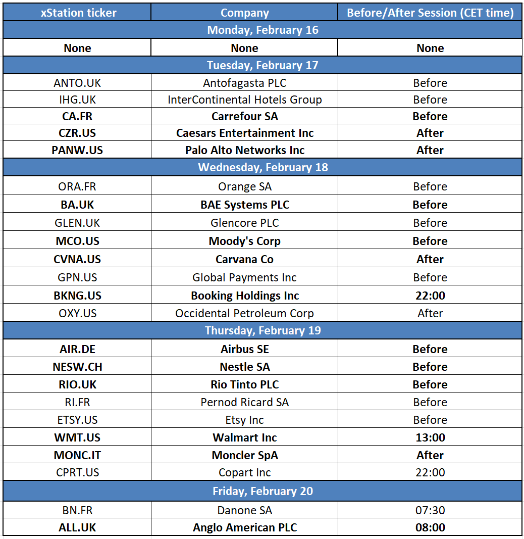Níže je kalendář výsledků společností pro tento týden.