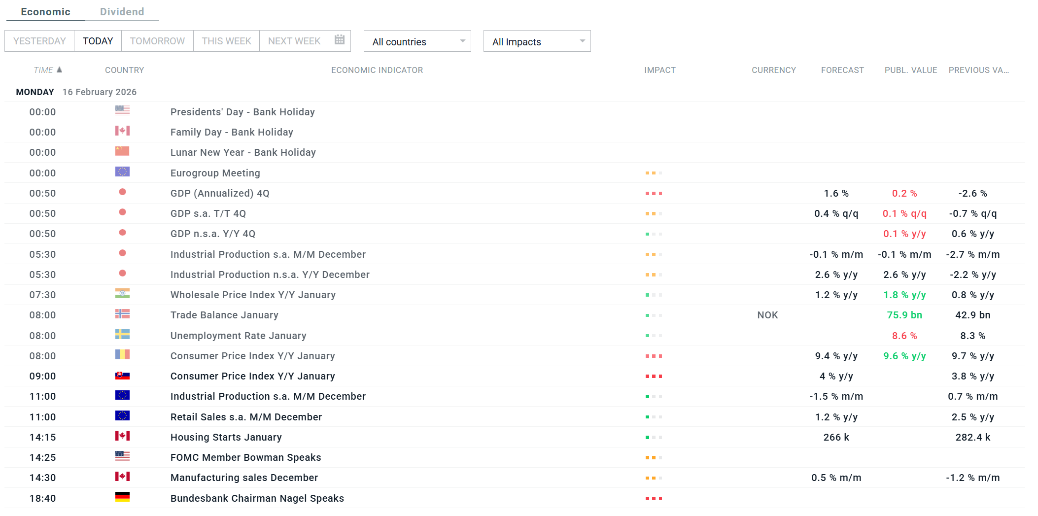 Ekonomický a korporátní kalendář: Bankovní svátek v Číně, USA a Kanadě 💡 (16.02.2026)