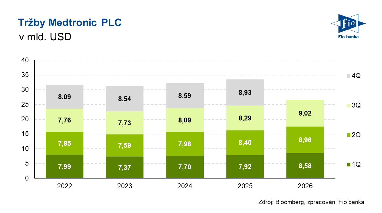 Klíčová slova: Analytik | Akcie | Bloomberg | CEO | Dividendový výnos | Marže | P/E | Portfolio | Ukazatel | Výkonnost | Výnos | Wall Street | Zisk na akcii | USD | Obchodování | JPMorgan | Zisk | Výsledky | Partners | EPS | Banka | Fio banka | Cena | Fio | Fiskální rok | Portfolia | Cílová cena | Hrubá marže | Provozní marže | ROCE | Tržby | Citi | Kapitalizace | Výhled | Konsensus | Konsenzus | Očekávání | Čistý zisk | Generální ředitel | Prognózy | Analytička | Negativní dopad | Pokles | Finanční ředitel | Vývoj | Růst | Akcie Medtronic | Medtronic | Růst tržeb | MDT | Příležitosti | Společnosti | Společnost | Výsledky společnosti | Celoroční výhled | TIM | 3М | Výhled pro rok | Portfólia | Očištěný zisk na akcii | Dlouhodobý růst | Fio banka, a.s. | Michal Bárta | Zařízení | Rok 2026 |