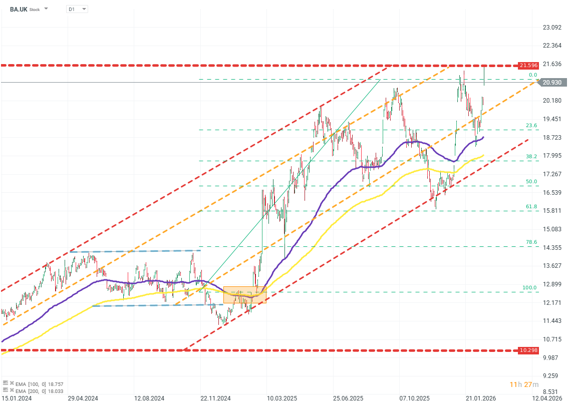 BAE Systems, britský dodavatel obranné techniky, zveřejnil v úterý své výsledky. Společnost po výrazném překonání vysokých očekávání akcionářů posiluje o několik procent. Ocenění akcií se opět dostalo na historická maxima (kolem 21 GBP za akcii).