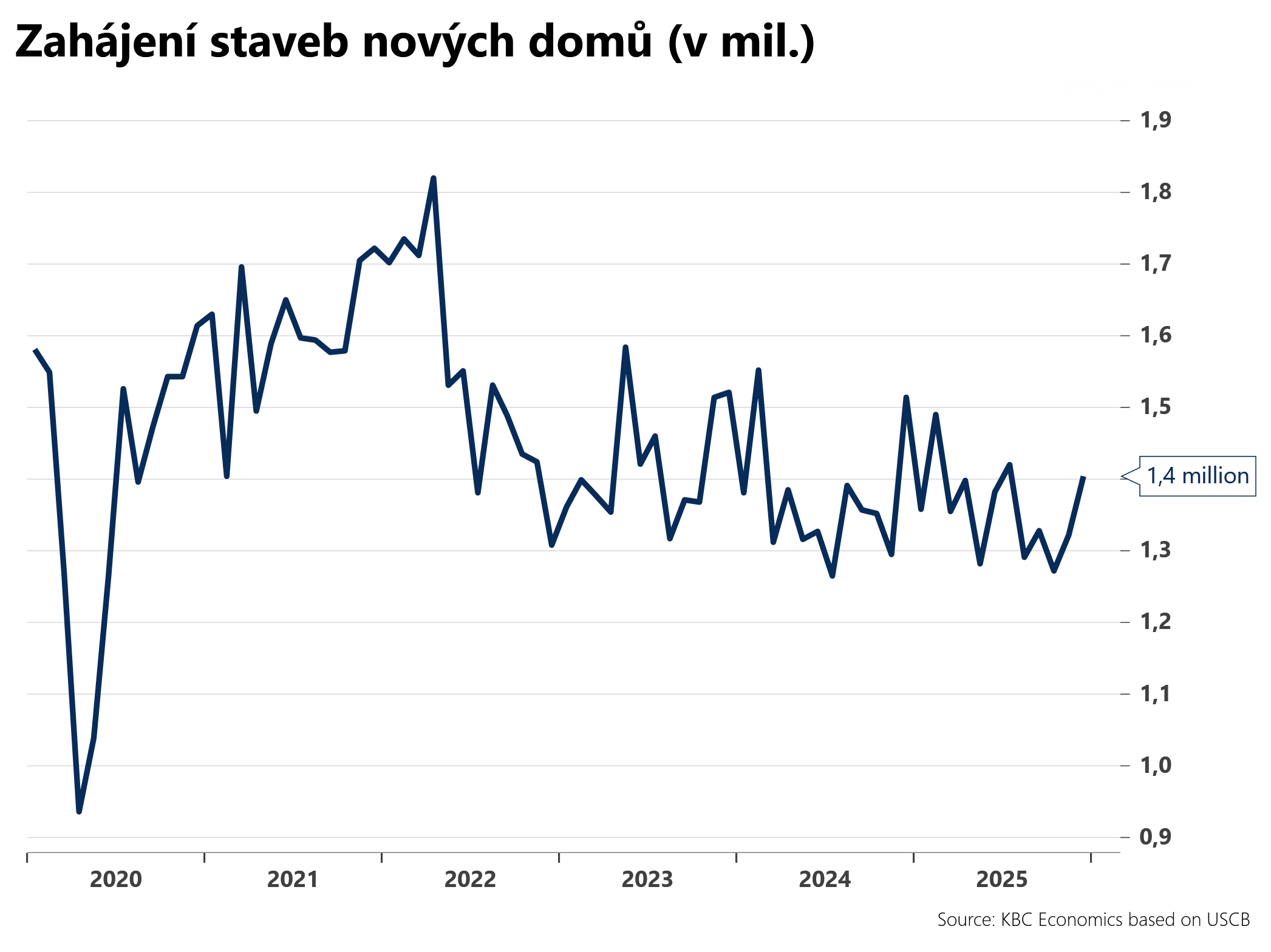 Počet zahájených staveb nových domů v prosinci stoupl na 1,4 mil. oproti 1,32 mil. v listopadu. Trhy očekávaly pokles na 1,3 mil.
