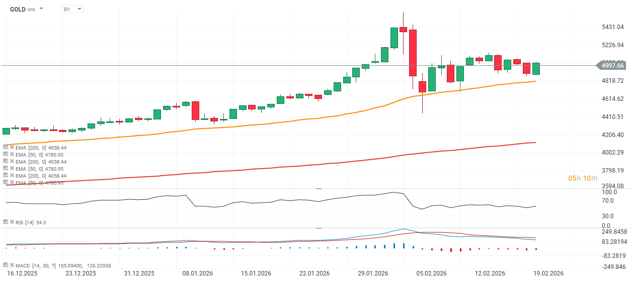 - Trhy vykazují určitou nervozitu v souvislosti se zvýšeným napětím mezi USA a Íránem. Zároveň je třeba poznamenat, že po většinu února se zlato obchodovalo v úzkém pásmu bez jasného směrového trendu.