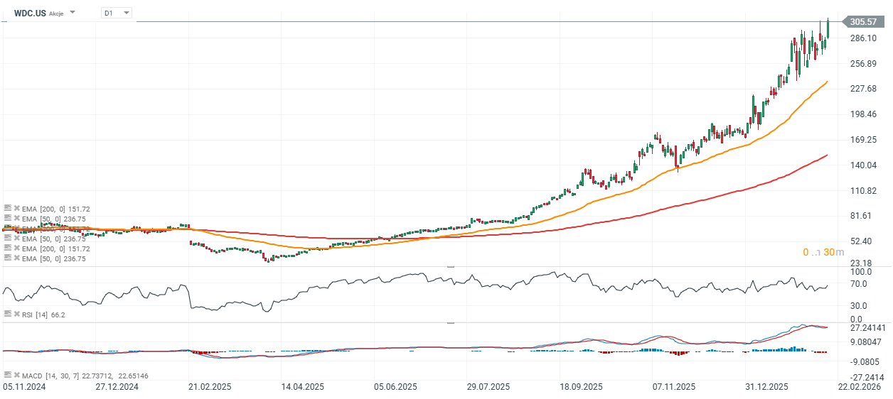Western Digital (WDC.US) se dostává do centra pozornosti díky dvěma klíčovým zprávám: společnost již vyprodala celou výrobní kapacitu HDD pro rok 2026 a zároveň urychluje prodej zbývajícího podílu v SanDisk (SNDK.US) v hodnotě zhruba 3 mld. USD. Tyto kroky vytvářejí konzistentní příběh o těžení z AI boomu a současném dokončování strukturální transformace. Akcie dnes rostou o více než 8 %.