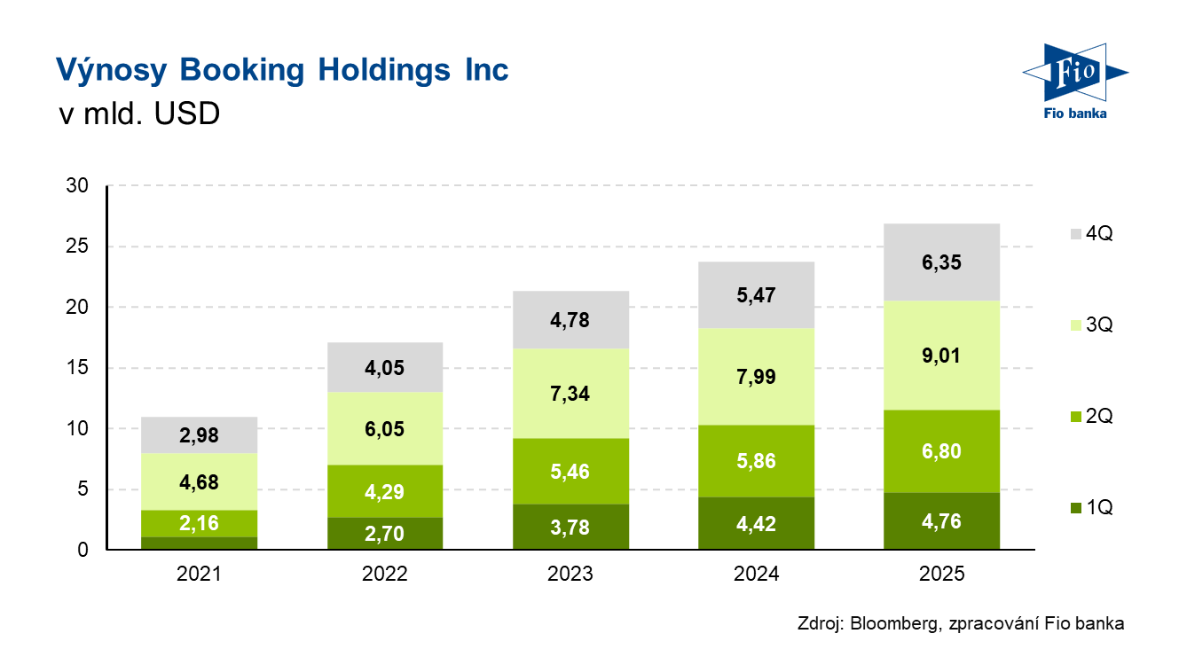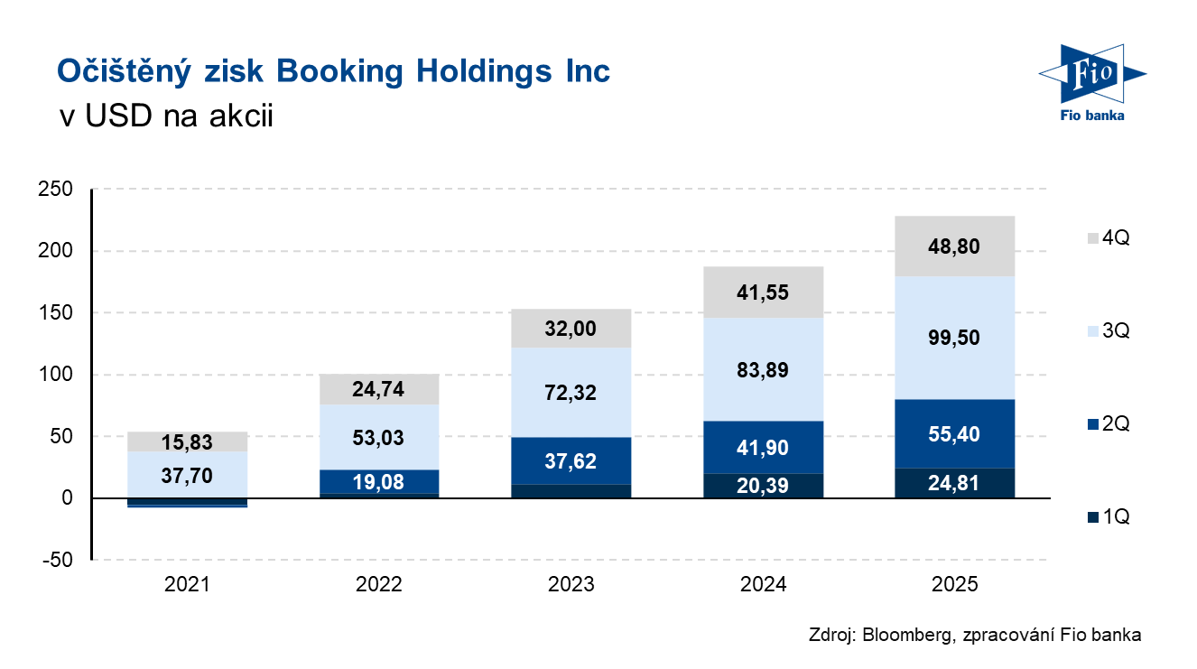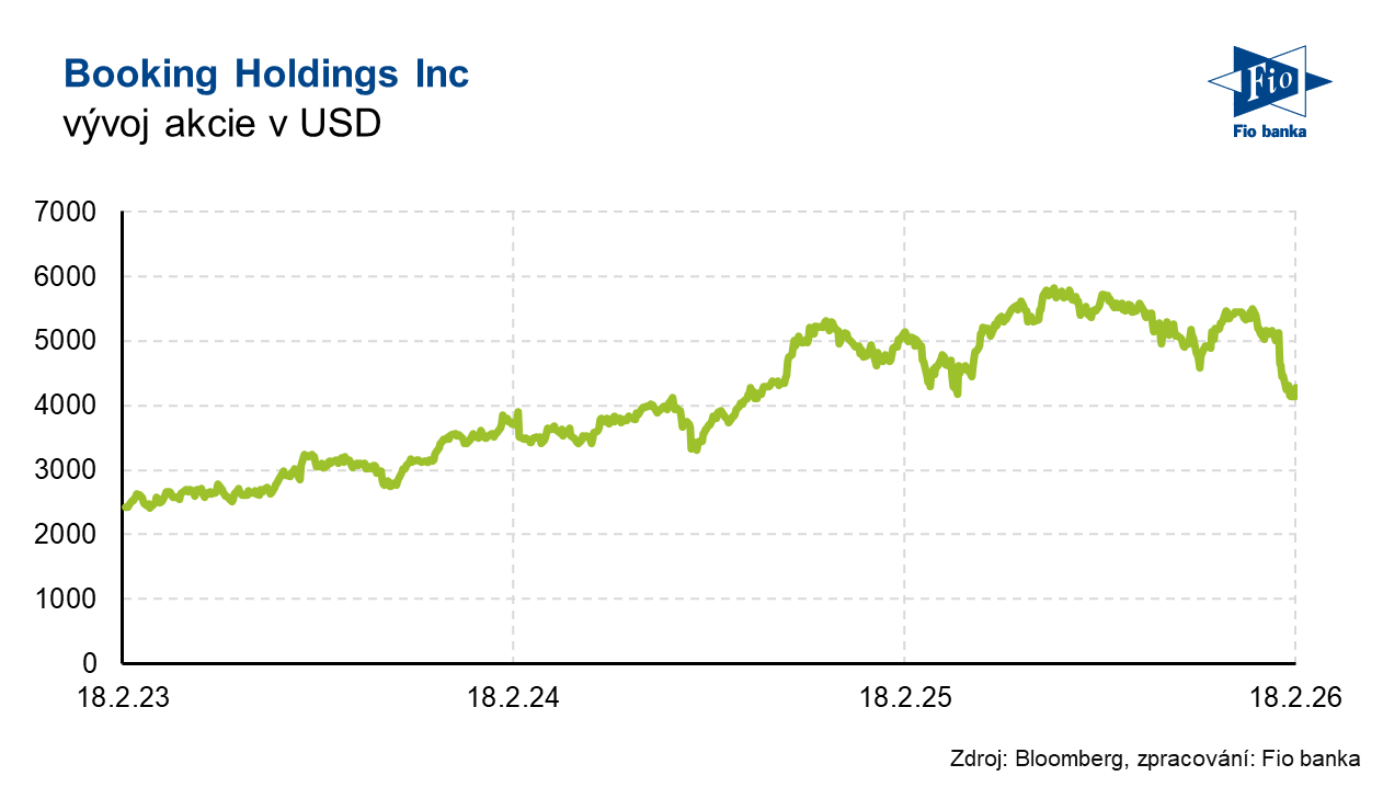 Klíčová slova: Analytik | Akcie | Bloomberg | Dividendový výnos | Investice | Marže | P/E | Split | Ukazatel | Výnos | Zisk na akcii | Analytici | EUR | USD | Zisk | Výsledky | EPS | Analytika | Banka | Fio banka | Cena | Fio | Trh | Vývoj akcií | Cílová cena | EBITDA | EBITDA marže | ROCE | Kapitalizace | Výhled | Konsensus | Výnosy | Očekávání | Akcie společnosti | Kvartální výsledky | Očekávání trhu | Cena akcie | Čistý zisk | Hospodaření | Výsledky hospodaření | Zisk EBITDA | Provozní zisk EBITDA | Provozní zisk | Meziroční růst | Výdaje | Vývoj | Fundament | Růst | Růst výnosů | Expanze | Umělé inteligence | Společnosti | Společnost | Výsledky společnosti | Booking Holdings | Booking | 3М | BKNG | Jakub Němec | Evercore | Očištěný zisk na akcii | Služby | Fio banka, a.s. | Rok 2026 |
