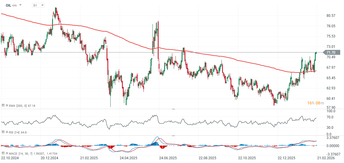 Ropa dvakrát reagovala na podporu v oblasti 58–60 USD za barel a nyní je přibližně o 20 % výše než na těchto minimech. Dříve, po překonání exponenciálního klouzavého průměru EMA200, ceny vzrostly v prosinci 2024 a znovu v červnu 2025. V obou případech však rally nakonec vyprchala a prodejci znovu získali kontrolu nad trhem.