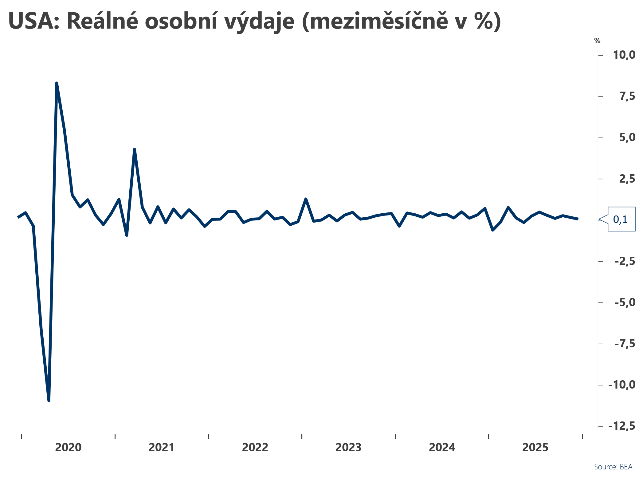 Reálné osobní výdaje v říjnu vzrostly podle očekávání trhů na 0,5 % oproti 0,3 % v září. -