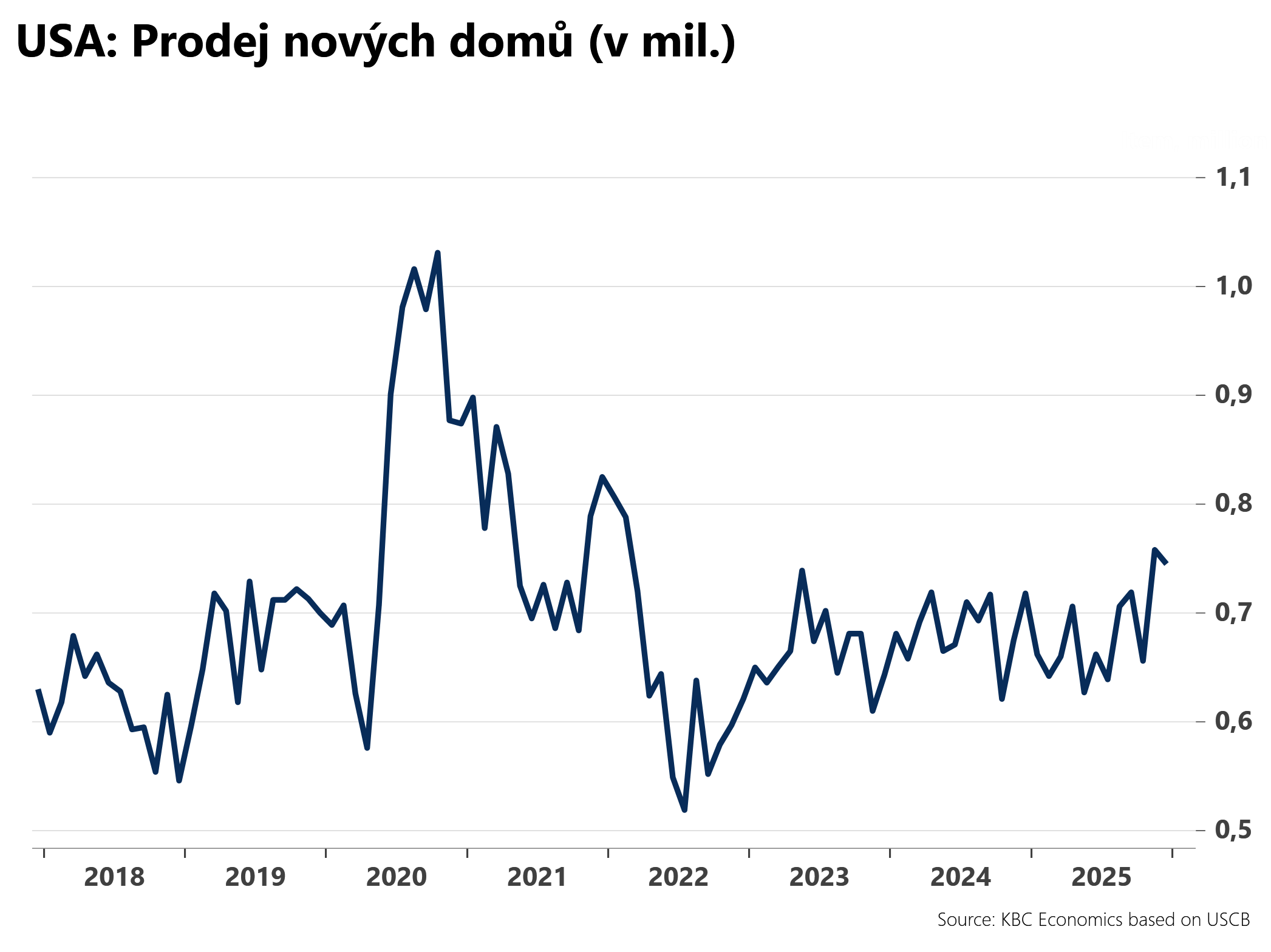 Počet prodaných nových domů v říjnu mírně stoupl na 745 tis. oproti revidovaným 742 tis. v září. Trhy očekávaly růst 800 tis. prodaných nových domů. -