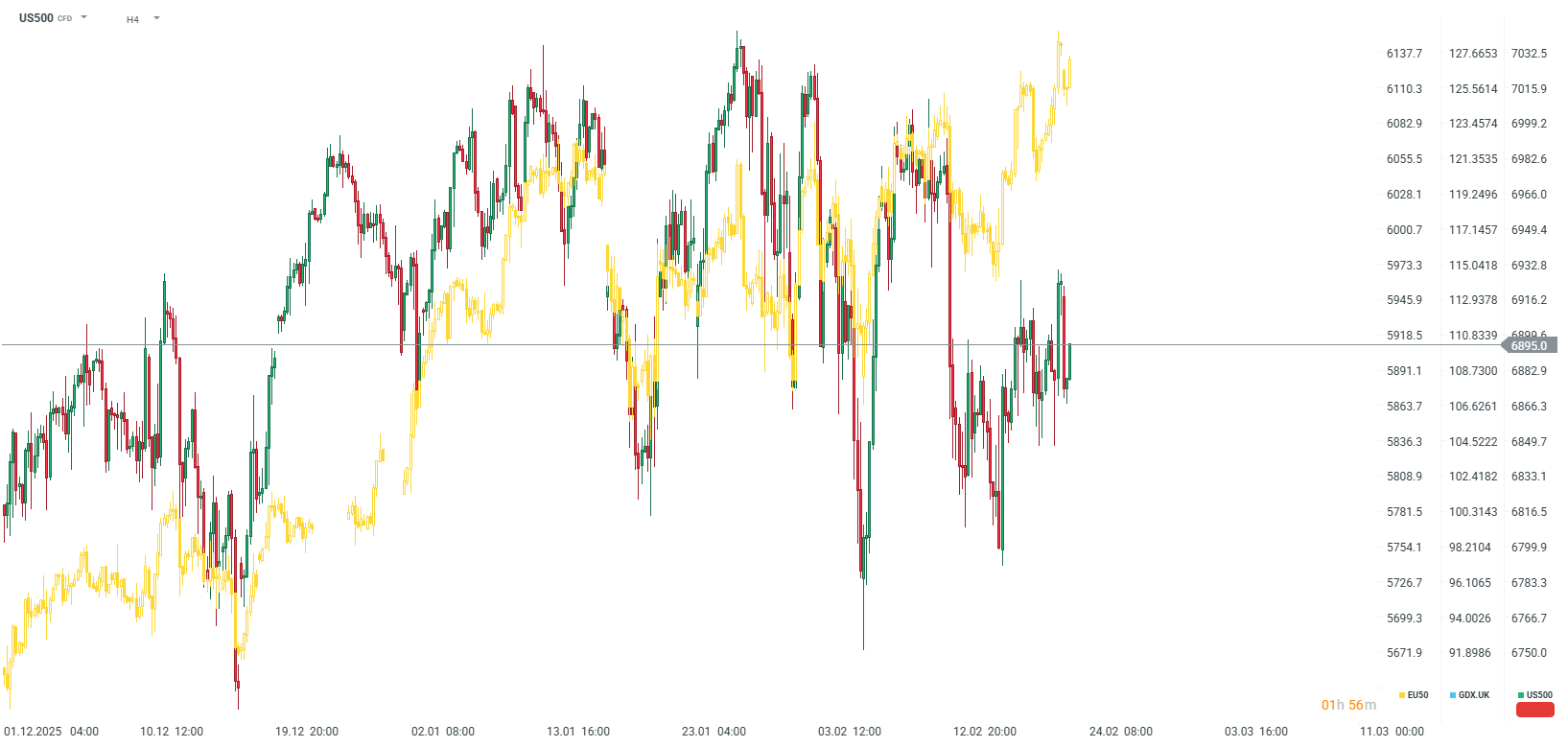 Index EU50 od začátku roku vzrostl, zatímco index US500 nevykazuje téměř žádné změny (téměř beze změny).