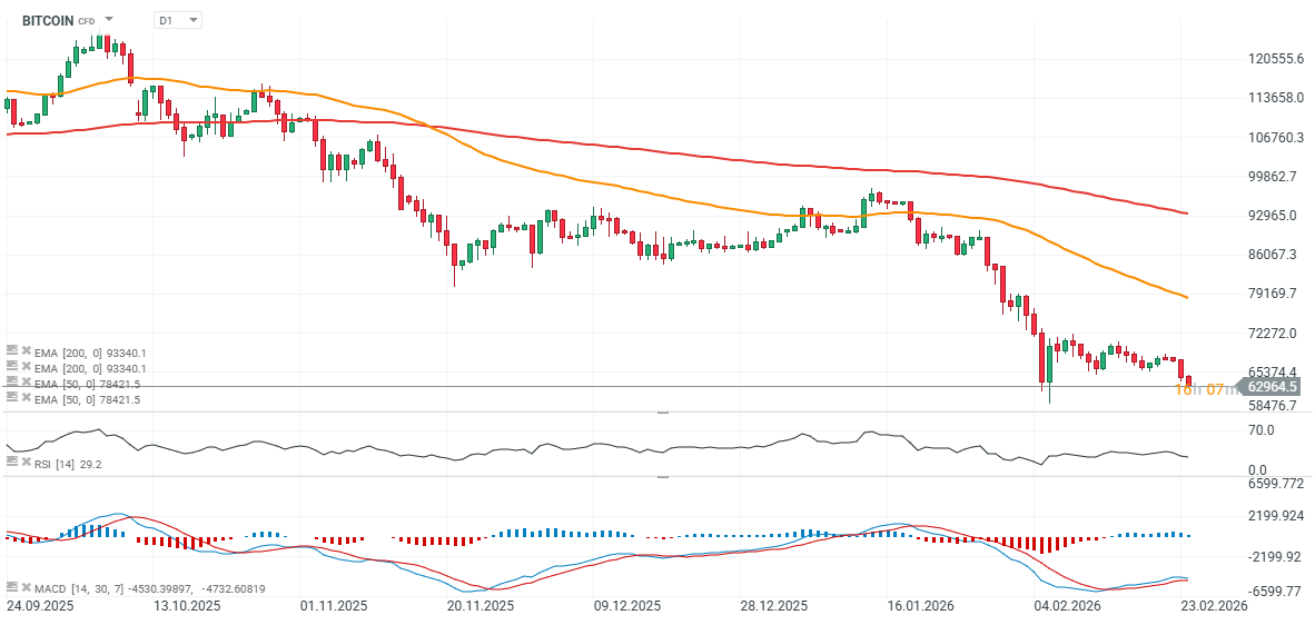 - Nedávný „strašidelný obchod“ poháněný umělou inteligencí (investoři prodávající riziková aktiva z obav, že umělá inteligence naruší podnikání) se zdá být na ústupu, avšak včerejší americká seance byla velmi slabá, když DJIA klesl o více než 1,65 % a Nasdaq 100 o 1,2 %.