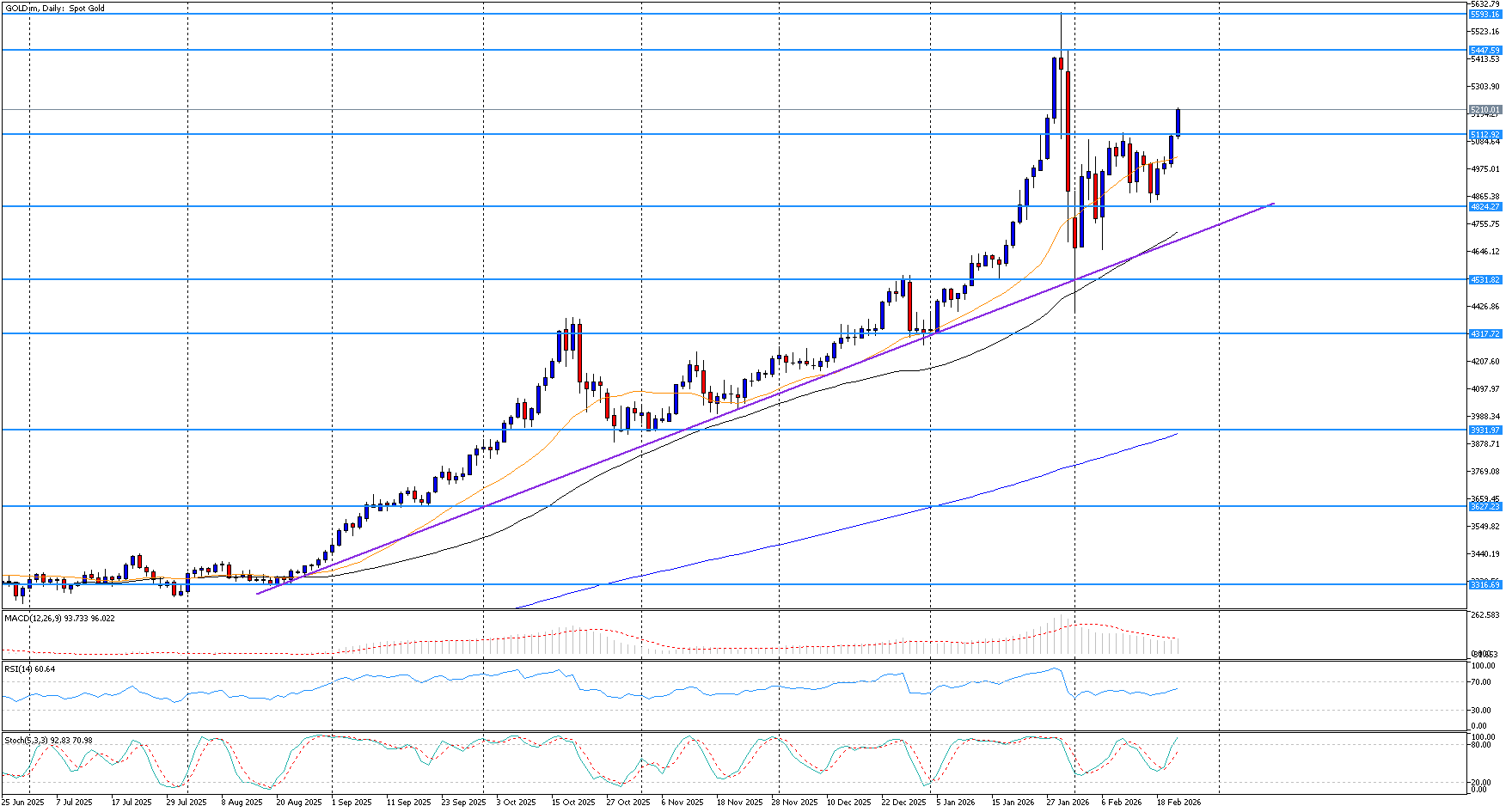 Globální finanční trhy reagují na páteční verdikt Nejvyššího soudu USA, který označil za nezákonná reciproční cla zavedená prezidentem Trumpem 2. dubna 2025 na základě zákona IEEPA. Administrativa však obratem představila alternativní řešení a nahradila tato opatření novými cly opřenými o zákon o obchodu z roku 1974. Nejprve byla oznámena plošná sazba 10 % na dovoz ze všech zemí, která byla již v sobotu navýšena na 15 %. Klíčovým omezením této legislativy je však skutečnost, že taková cla mohou být uplatňována pouze po dobu 150 dnů, přičemž jejich prodloužení podléhá schválení Kongresu, který zatím nejeví výraznou ochotu tuto pravomoc využít. Trh nyní zvažuje, zda Bílý dům tímto krokem pouze získává čas pro přípravu trvalejšího obchodního rámce, nebo zda prezident spoléhá na dočasná cla jako vyjednávací nástroj k urychlení podpisu obchodních dohod s klíčovými partnery. Situaci dále komplikuje oznámení amerických celních úřadů, že od 24. února přestanou vybírat cla podle IEEPA. Tento právní i fiskální vývoj otevírá otázku možného vracení již vybraných cel a potenciálního dopadu na rozpočtový deficit. Wall Street reagovala na rozhodnutí Nejvyššího soudu opatrným optimismem, nicméně futures následně zamířily do negativního teritoria v důsledku nově vzniklé nejistoty. Americký dolar se dostal pod tlak a v pondělí oslabil již druhý den v řadě. Naopak zlato těží z eskalující obchodní nejistoty i geopolitických rizik a poprvé za téměř dva týdny překonalo hranici 5 100 dolarů. Cena zároveň prorazila nad 20denní jednoduchý klouzavý průměr a posunula se směrem k 5 200, čímž se otevřel prostor pro test klíčové zóny rezistence na 5 500. Růst zlata přichází také na pozadí zvýšeného napětí mezi USA a Íránem. Washington pohrozil závažnou akcí, pokud během následujících 10 až 15 dnů nedojde k dosažení smysluplné jaderné dohody. Írán přitom může odmítat přísnější limity obohacování uranu bez výrazných ekonomických a bezpečnostních záruk. Technické indikátory u zlata si udržují pozitivní sklon, což naznačuje pokračující nákupní zájem. V případě korekce by pokles pod 5 000 mohl nejprve otestovat podpůrné pásmo mezi 4 910 a 200denním SMA na 4 860. Pokud by tato oblast neodolala, mohl by se tlak rozšířit směrem k 4 760 a následně k minimu z 6. února na 4 655. Celkově zůstávají trhy citlivé na kombinaci právní nejistoty kolem celní politiky a geopolitického napětí, což podporuje zvýšenou volatilitu napříč aktivy.