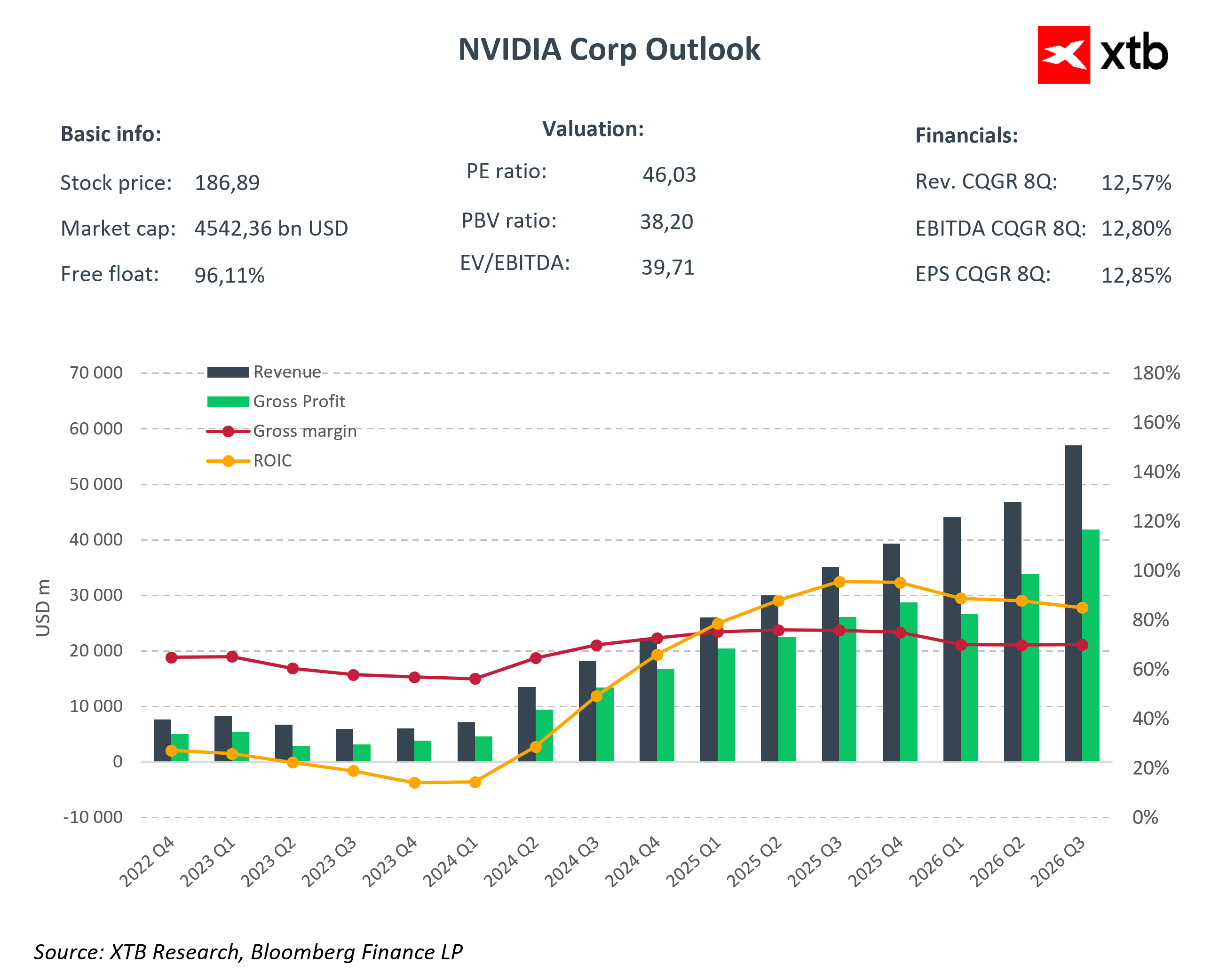 Technologická společnost Nvidia zveřejnila výsledky hospodaření za čtvrtý kvartál fiskálního roku 2025, který skončil 26. ledna 2025, a výhled hospodaření na 1Q FY 2026. Výsledky byly solidní, investory však zklamala hrubá marže, jež byla negativně ovlivněna uvedením nové architektury Blackwell na trh. Poptávka po této architektuře je dle společnosti silná a již ve 4Q vygenerovala výnosy ve výši 11 mld. USD. -