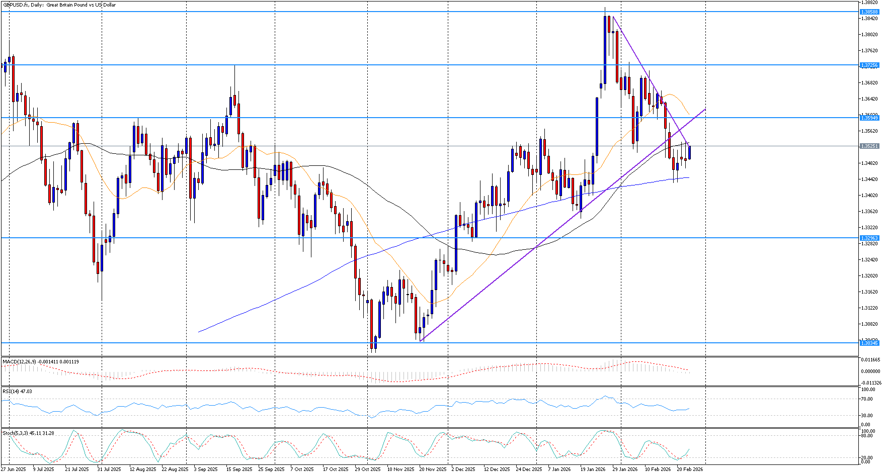 Měnový pár GBP/USD vstoupil do týdne pod výrazným tlakem poté, co se mu nepodařilo udržet nad střednědobou vzestupnou trendovou linií ani nad 50denním jednoduchým klouzavým průměrem. Pondělní odmítnutí těchto technických bariér vedlo k oslabení kurzu, který se nyní obchoduje nejen pod zmíněnými úrovněmi, ale také pod psychologickou hranicí 1,3500. Tato zóna zůstává klíčovým bodem rovnováhy, přičemž její opětovné dobytí by býkům poskytlo alespoň částečnou technickou oporu. Indikátory momenta však zatím neposkytují přesvědčivý signál obratu. Stochastické oscilátory se sice mírně odrážejí od přeprodaných hodnot, což naznačuje potenciál krátkodobé stabilizace, avšak MACD se propadl do záporného teritoria a zůstává pod svou signální linií. Tato konfigurace poukazuje na přetrvávající medvědí tlak a omezený růstový potenciál v nejbližším horizontu. Navzdory zvýšené volatilitě spojené s rozhodnutím Nejvyššího soudu USA zrušit většinu cel prezidenta Trumpa se GBP/USD držel v relativně úzkém pásmu. V posledních čtyřech seancích se kurz pohyboval mezi 50denním a 200denním SMA, což odráží vyčkávací postoj trhu. Pozornost investorů se nyní soustředí na vystoupení guvernéra Bank of England Andrewa Baileyho před finančním výborem. Pokud Bailey naznačí pokračující ochotu ke snižování sazeb, může to obnovit prodejní tlak a přivést kurz pod 200denní SMA, která se sbližuje s úrovní 1,3439. V případě dalšího oslabení by se podpora mohla objevit kolem 1,3400 a následně na 1,3337. Právě průlom pod 1,3337 by znamenal významné zhoršení střednědobého technického obrazu a posun výhledu směrem k neutrálnímu až medvědímu nastavení. Naopak návrat nad 1,3500 a zejména nad 50denní SMA na 1,3525 by změnil krátkodobou dynamiku zpět ve prospěch kupců. Takový vývoj by otevřel prostor k testu 1,3600, přičemž mezilehlá překážka může ležet na 1,3665 před případným pohybem směrem k 1,3700. Celkově zůstává GBP/USD na rozcestí. Obnovení růstového trendu je podmíněno znovuzískáním 50denního SMA, zatímco průlom pod 1,3337 by potvrdil přechod k slabšímu střednědobému výhledu.