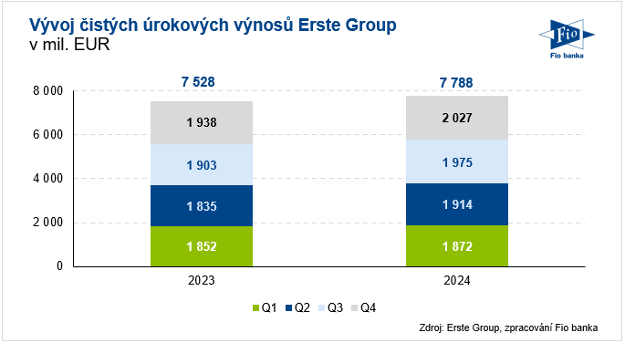 Na provozní úrovni Erste reportovala zisk 1 557 mil. EUR (meziročně + 12 %), při našem očekávání ve výši 1 434 mil. EUR.
