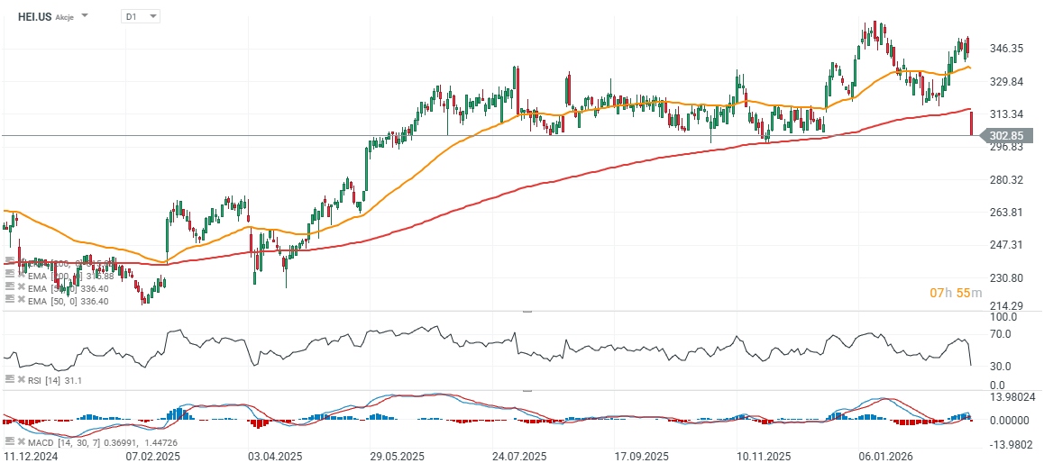 Sezónně očištěné nové žádosti dosáhly za týden končící 21. února 212 tis., což je o 4 tisíce více oproti předchozímu, směrem nahoru revidovanému údaji, avšak pod konsensem Dow Jones na úrovni 215 tis. Čtyřtýdenní klouzavý průměr vzrostl pouze o 750 na 220 250. Pokračující žádosti, zveřejňované s týdenním zpožděním, klesly o 31 tisíc na 1,833 mil. Data naznačují pravděpodobné prodloužení pauzy v uvolňování měnové politiky Fedu. Více než 3% pokles akcií Nvidia zatěžuje širší tržní sentiment, zatímco letecká a obranná společnost Heico (HEI.US) ztrácí téměř 13 %.