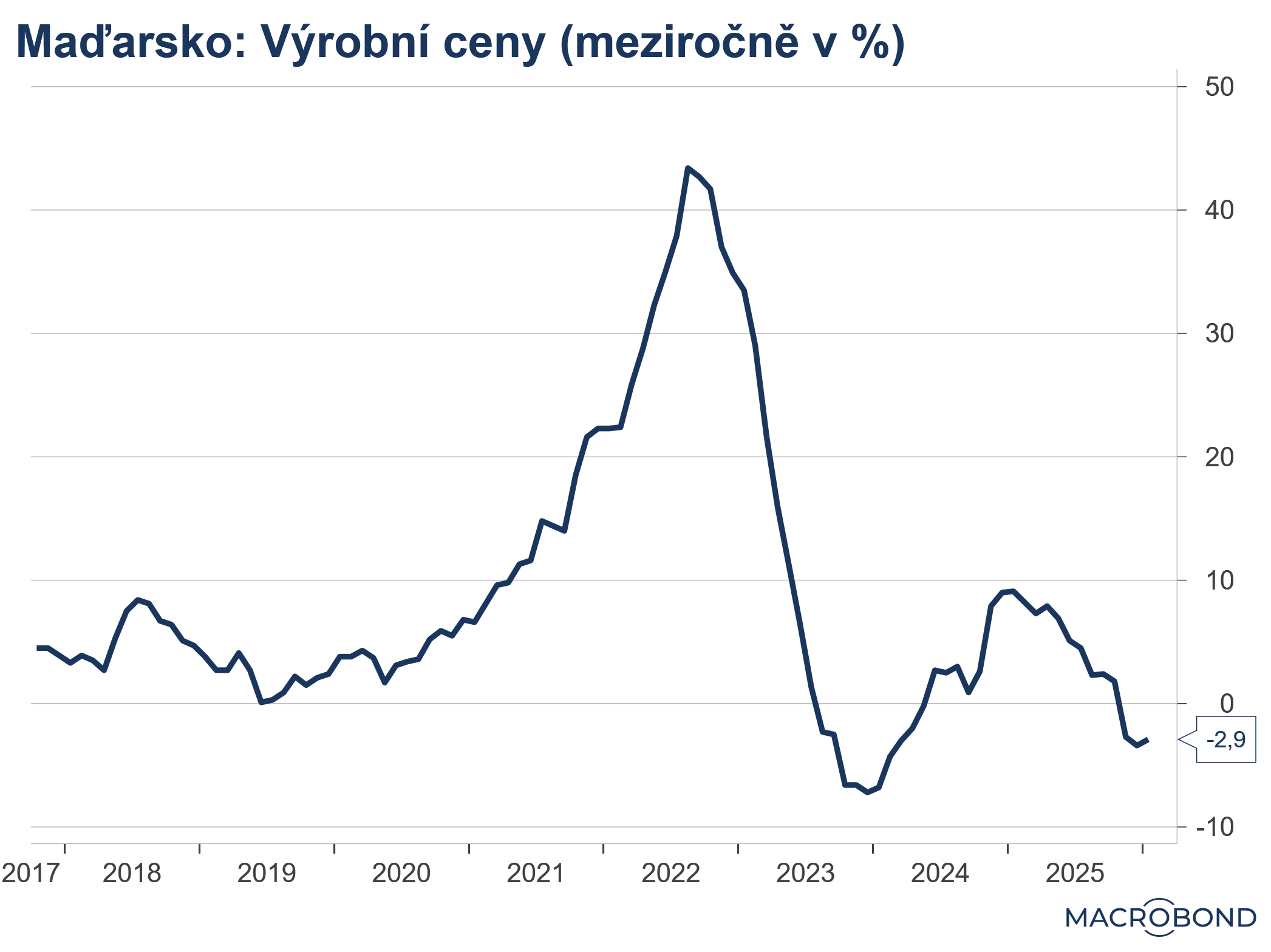 Maďarský index výrobních cen dál klesal