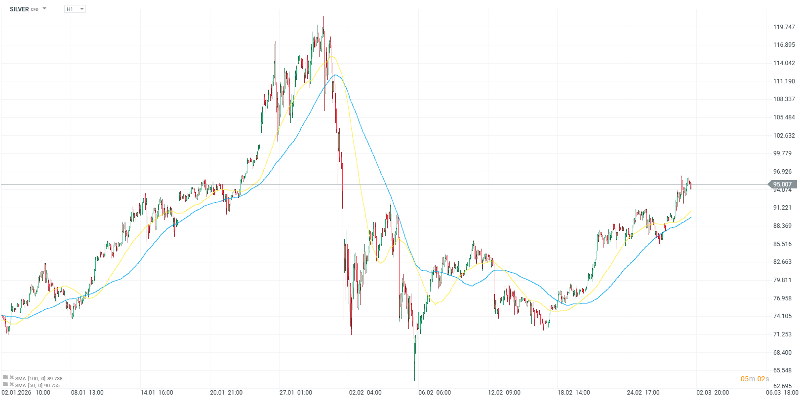 Stříbro si od začátku roku připisuje přes 30 %, přičemž současný geopolitický vývoj přispívá k jeho růstu. Aktuálně se cena pohybuje na 95 USD za unci.