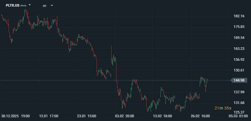Palantir (PLTR) se po zhruba čtyřměsíčním poklesu přibližně o 35–38 % od nedávných maxim vrací na „buy“ seznamy části Wall Street, protože série upgradeů a vyšších cílových cen odráží větší důvěru v růst tažený obranou a adopci „operational AI“. Akcie se 3. března 2026 obchodovaly kolem 144 USD (intradenní rozpětí zhruba 138–146 USD), a trh tak znovu řeší rovnováhu mezi zlepšujícími se fundamenty a vysokou valuací. Zdroj: xStation5