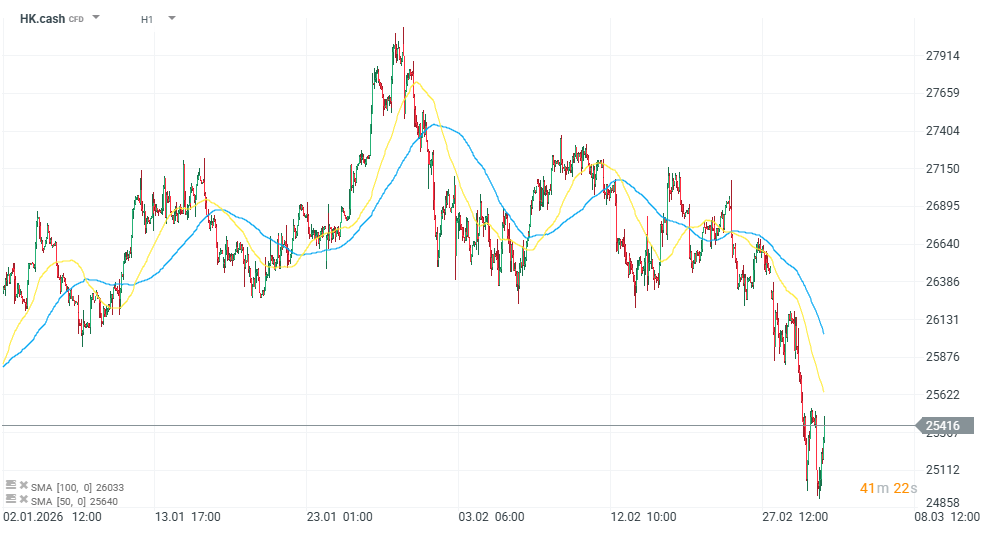 Asijské akciové trhy se dostaly pod silný prodejní tlak poté, co eskalace konfliktu kolem Íránu zvýšila nervozitu investorů na globálních trzích. Index Hang Seng během obchodní seance výrazně oslabil a odepisuje 2 %. Investoři reagují především na růst cen ropy a obavy z narušení globálního obchodu, což by mohlo negativně dopadnout na exportně orientované ekonomiky regionu. Hang Seng zahrnuje největší společnosti obchodované na burze v Hongkongu, je citlivý zejména na vývoj čínské ekonomiky, technologický sektor a finanční tituly. Pokles se dotkl především technologických akcií a developerských firem, které jsou citlivé na změny globálního sentimentu. Hang Seng od začátku roku ztrácí 4 %