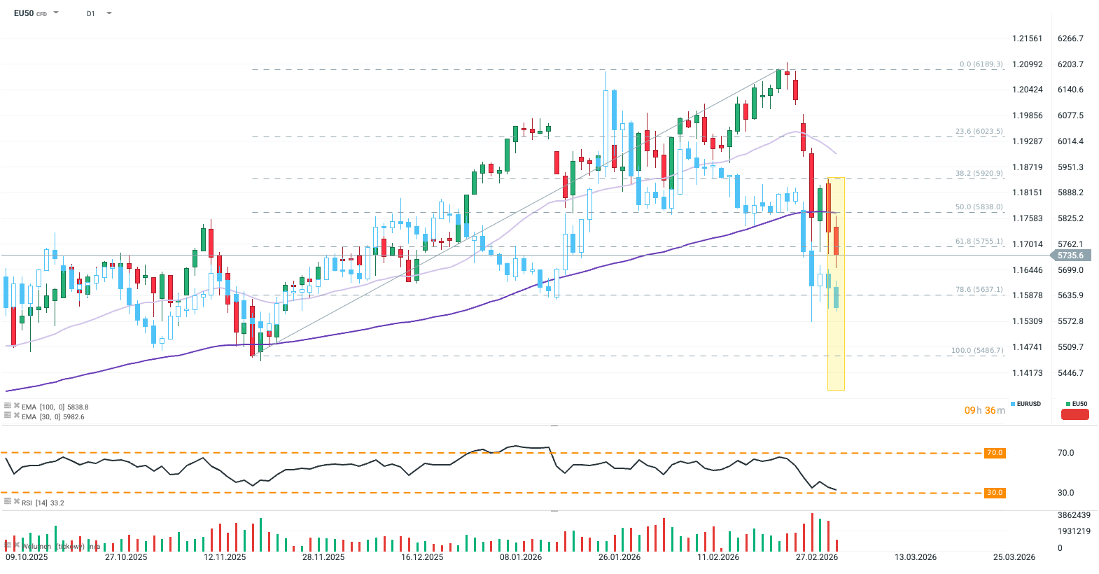 EU50 je na nejnižší úrovni od prosince 2025, zatímco EUR/USD prohlubuje ztráty pod hranicí 1,1600.