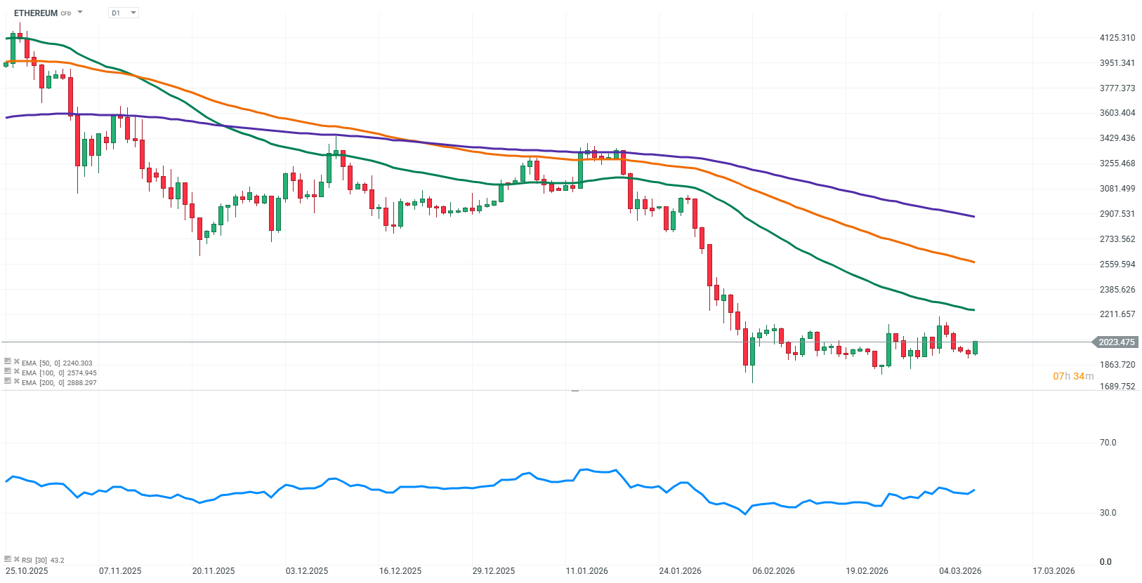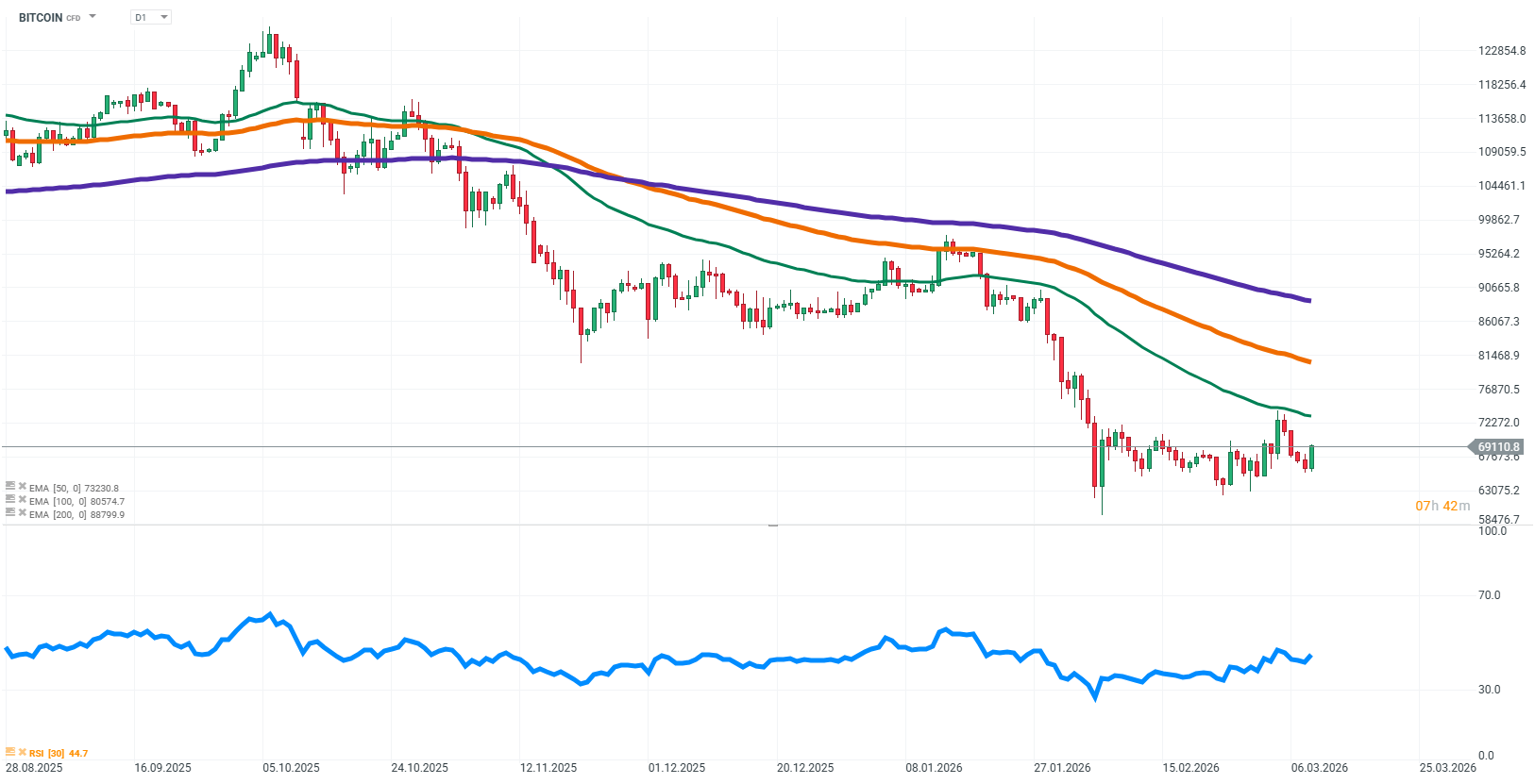 Navzdory eskalujícímu konfliktu na Blízkém východě a růstu cen ropy nad 100 USD za barel dnes kryptoměnový trh vykazuje zřetelné zisky, které přesahují 4 %. Bitcoin se drží nad 69 000 USD, zatímco Ethereum překonalo 2 000 USD. Zároveň tradiční akciové trhy klesají, což zdůrazňuje rozdíly v reakcích mezi finančními trhy a trhy digitálních aktiv.