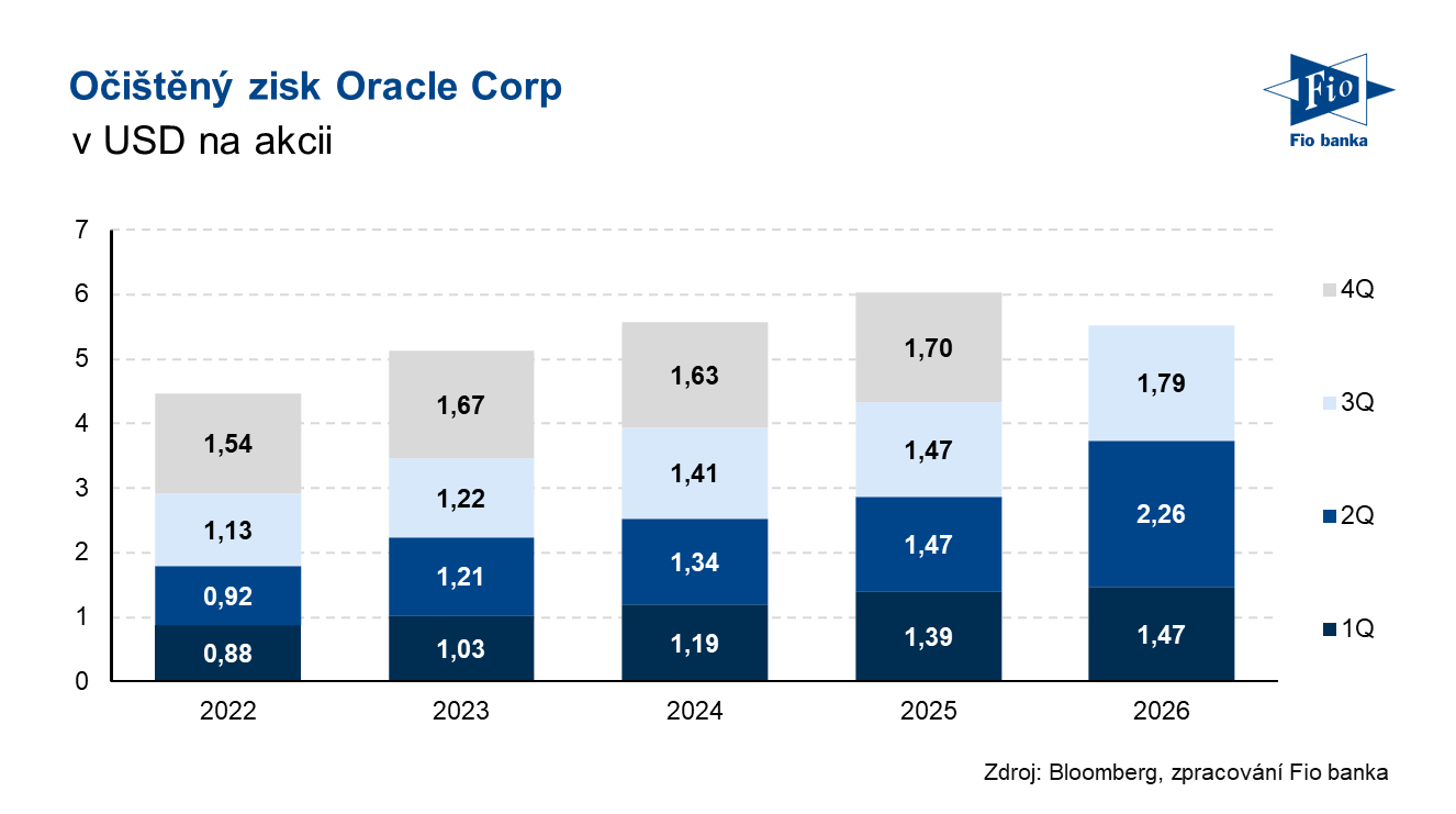 Klíčová slova: Poptávka | Akcie | Bloomberg | Dividendový výnos | Marže | P/E | Ukazatel | Výnos | Zisk na akcii | Analytici | USD | Dluhopisy | Obchodování | Morgan Stanley | Zisk | Výsledky | Financování | EPS | Banka | Fio banka | Capital Markets | Cena | Fio | Fiskální rok | Management | Markets | Ocenění akcií | Cílová cena | ROCE | RBC Capital Markets | RBC Capital | Kapitalizace | Výhled | Konsensus | Výnosy | Očekávání analytiků | Konsenzus | Očekávání | Kapitálové výdaje | Čistý zisk | Objem | Firma | Kontrakty | Hospodaření | Výsledky hospodaření | Ukazatele | Solidní výsledky | Provozní zisk | Výdaje | Vývoj | Uzavření trhů | JDE | Oracle | Ocenění | Wedbush | Softwarová společnost | Výhled na rok | AI | Společnosti | RBC | Společnost | Výsledky společnosti | 3М | SaaS | ORCL | Akcie Oracle | Monetizace | Společnost Oracle | Oracle včera | Capital | Očištěný zisk na akcii | Hardware | Služby | Fio banka, a.s. | Michal Šnobl | Cloudové infrastruktury | Oracle (ORCL) | Akcie Oracle (ORCL) | Rok 2026 |