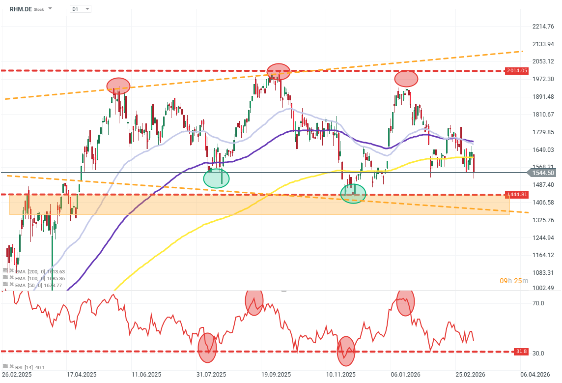 Přední evropská společnost z obranného průmyslu, Rheinmetall, dnes zveřejnila své výsledky. Navzdory silnému růstu tržeb, solidnímu zlepšení marží a optimistickému výhledu to nestačilo na splnění očekávání trhu. Akcie společnosti po zveřejnění oslabují přibližně o 6 %.
