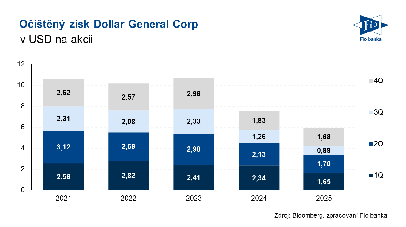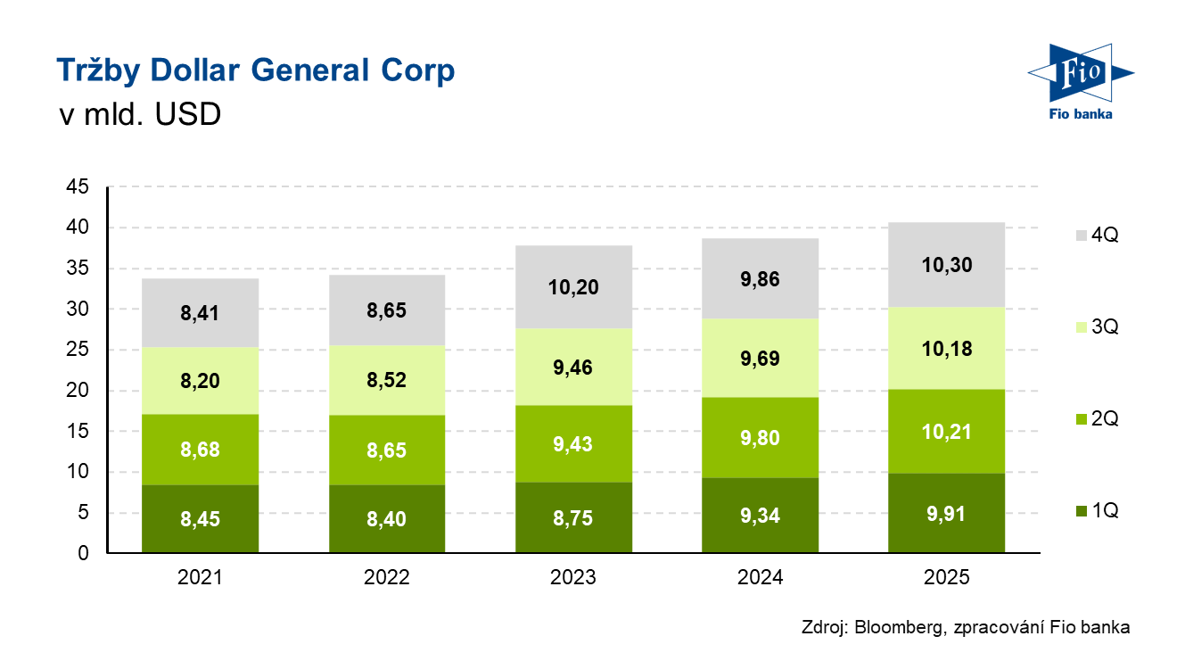 Klíčová slova: Dividendy | Akcie | Bloomberg | Cash flow | Dividendový výnos | Dollar | Marže | Momentum | P/E | Ukazatel | Výnos | Wall Street | Zisk na akcii | Analytici | USD | Obchodování | Zisk | Výsledky | EPS | Banka | Fio banka | Cena | Fio | Fiskální rok | Trh | Cílová cena | Hrubá marže | Provozní marže | Tržby | Kapitalizace | Výhled | Konsensus | Očekávání analytiků | Očekávání | Akcie společnosti | Odhady analytiků | Kapitálové výdaje | Čistý zisk | Generální ředitel | Provozní zisk | Zlepšení | Úsilí | Výdaje | Vývoj | Růst | Vedení společnosti | Ceny | Progres | Bloomberg Intelligence | Výhled na rok | Vývoj akcie | Pozitivní vliv | DG | Společnosti | Společnost | Výsledky společnosti | 3М | Řetězec | Jakub Němec | Dollar General | Výhodné ceny | Vyplacení dividendy | Fio banka, a.s. | Rok 2025 | Rok 2026 |