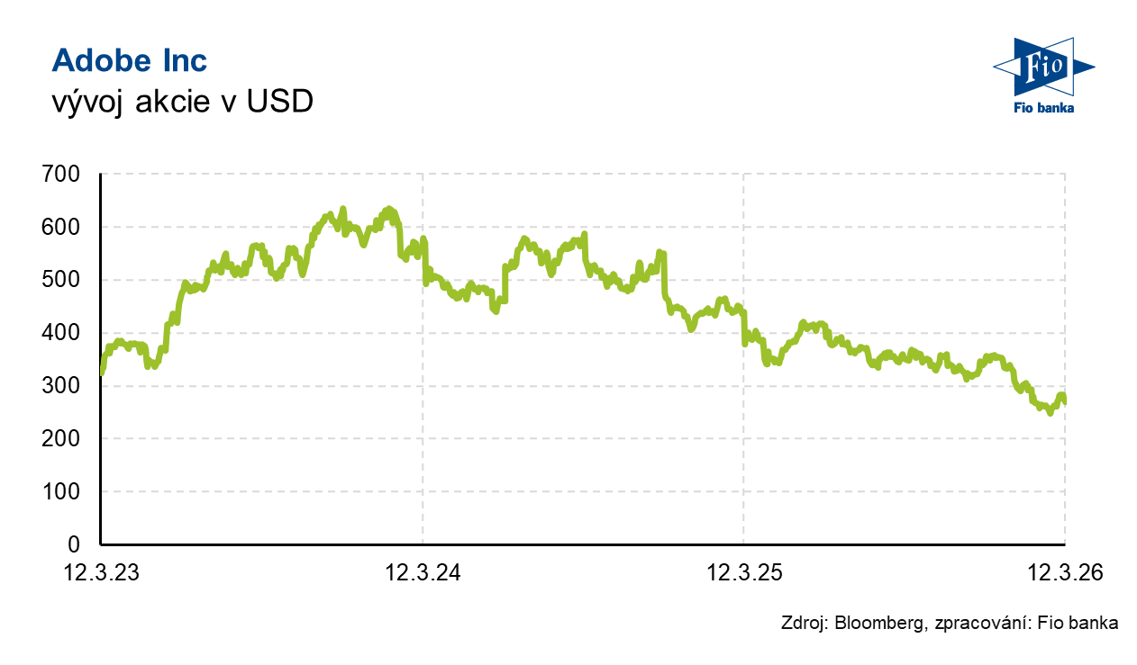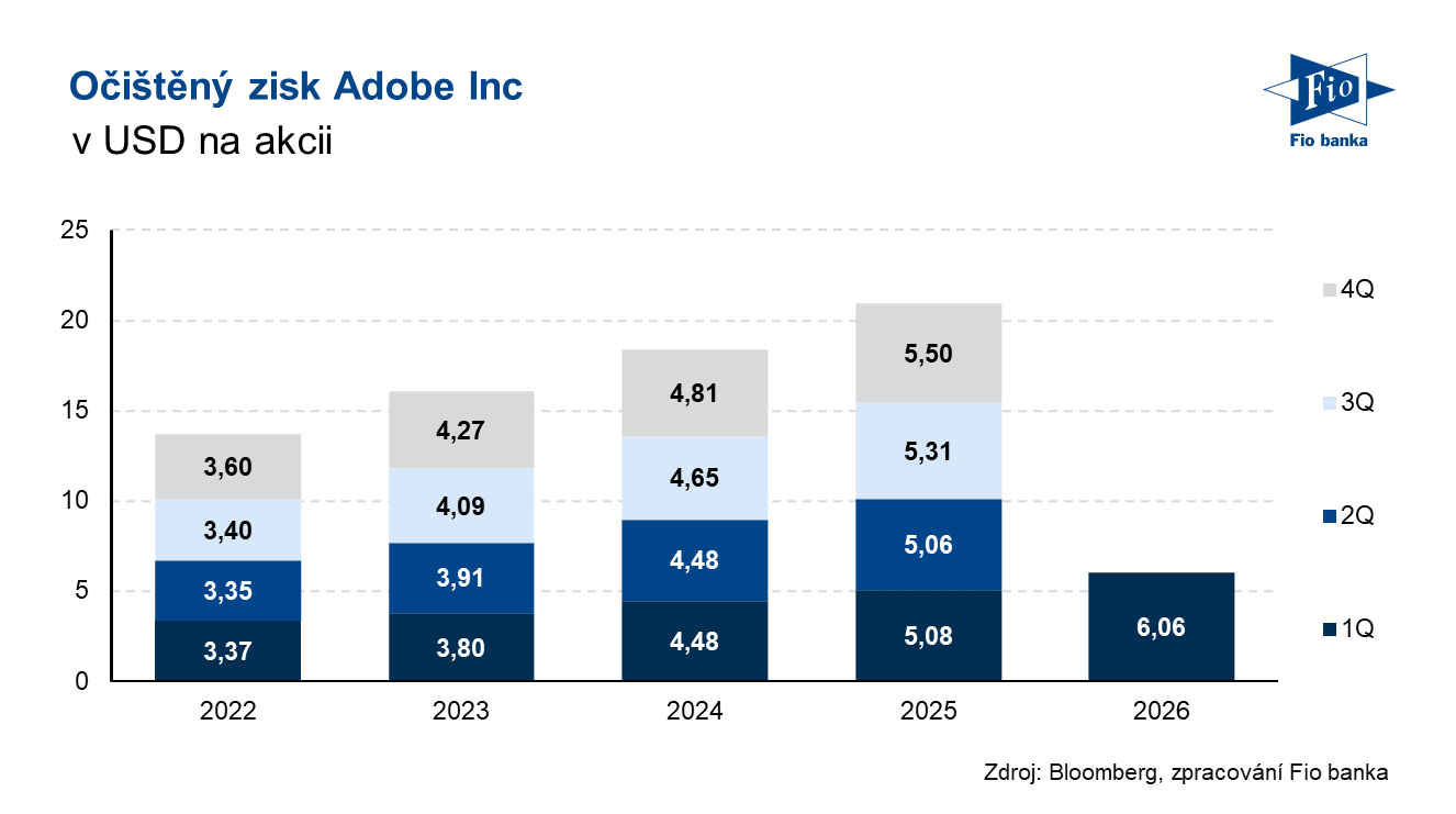 Klíčová slova: Akcie | Transakce | Bloomberg | CEO | Cash flow | Stock | Dividendový výnos | Marže | P/E | Pozice | Ukazatel | Výnos | Zisk na akcii | USD | Obchodování | Investoři | Byznys | Zisk | Zkušenosti | Výsledky | EPS | Banka | Fio banka | Capital Markets | Cena | Fio | Fiskální rok | Management | Markets | Zpráva | Cílová cena | Volby | RBC Capital Markets | Microsoft | RBC Capital | Hospodářské výsledky | Firmy | Citi | Kapitalizace | Výhled | Konsensus | Výnosy | Očekávání | Odhady analytiků | Čistý zisk | Předseda představenstva | Firma | Co bude | Generální ředitel | Nejistoty | Předseda | Solidní výsledky | Google | Pokles | Provozní zisk | Finanční ředitel | Meziroční růst | Zrychlení růstu | Vývoj | Viceprezident | Růst | Solidní růst | Uzavření trhů | ADBE | Akcie Adobe (ADBE) | Akcie Adobe | Očekávané výsledky | Růst výnosů | Umělé inteligence | Představenstvo | Nvidia | Bloomberg Intelligence | Adobe (ADBE) | Softwarová společnost | Express | Cíle | AI | Společnosti | RBC | Gemini | Společnost | Výsledky společnosti | 3М | Akcie Adobe Inc | Creative Cloud | Shantanu Narayen | Společnost Adobe | Monetizace | Pohled na akcie | ChatGPT | OpenAI | Vice | Finanční cíle | Generativní AI | Anthropic | Copilot | Výkonný viceprezident | Hodnota transakce | Capital | Očištěný zisk na akcii | Prodeje | Oznámení | Výzkum a vývoj | Výsledky za první čtvrtletí | Fio banka, a.s. | Náklady | Ředitel společnosti | Michal Šnobl | Claude | Rok 2026 | Převzetí |