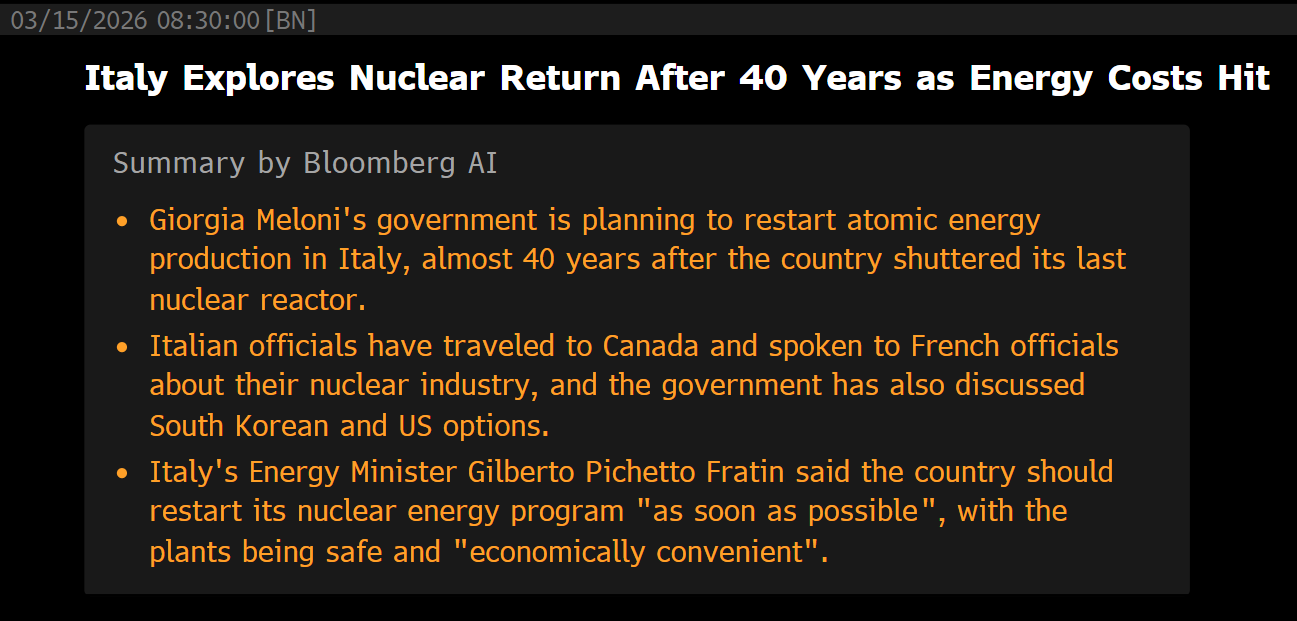 Italové se po čtyřiceti letech přelomově vrací k jaderné energetice, stále zřetelněji se potvrzuje kolosálnost německého omylu s jádrem. Proč Italové nevsází na údajnou láci obnovitelných zdrojů?