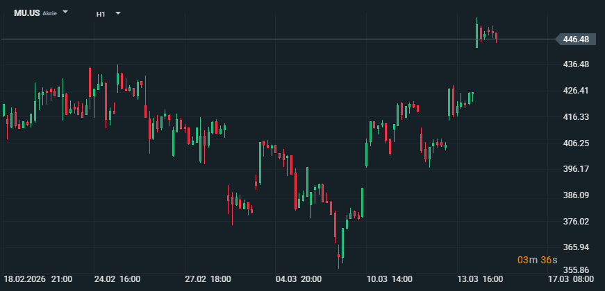 Akcie Micron (MU) posílily poté, co společnost potvrdila rozšíření výrobní kapacity na Tchaj-wanu pro paměti využívané v AI serverech. Zpráva přichází těsně před výsledky za fiskální Q2, které Micron zveřejní ve středu 18. března 2026.