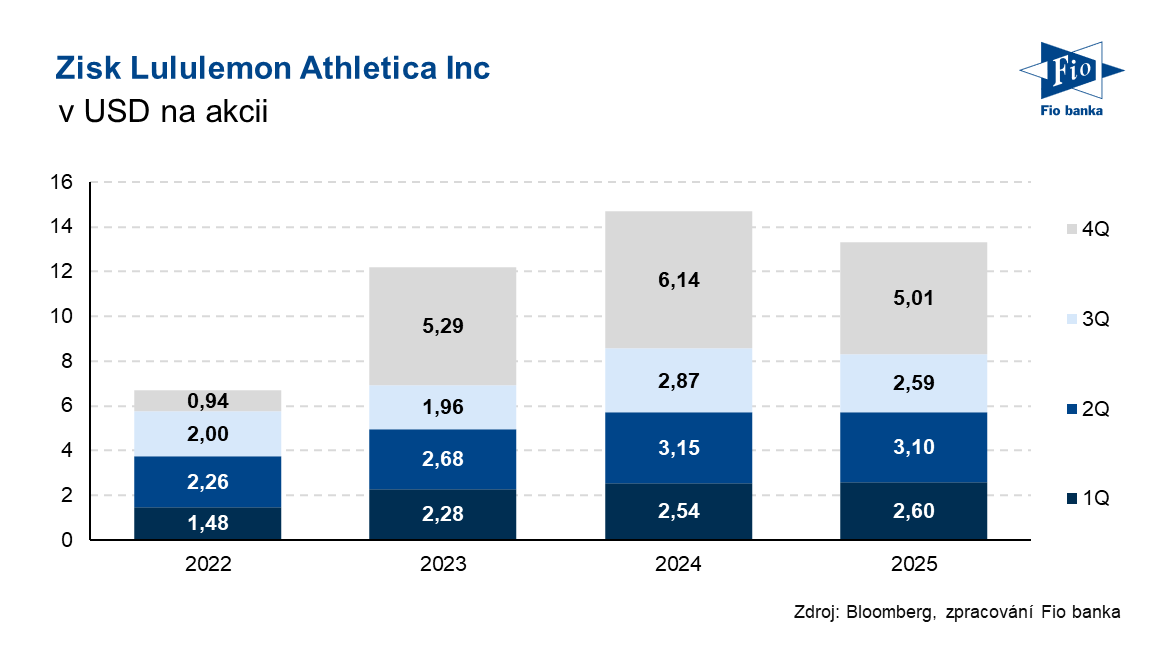 Klíčová slova: USA | Akcie | Bloomberg | CEO | Dividendový výnos | Marže | P/E | Ukazatel | Výnos | Zisk na akcii | USD | Obchodování | Zisk | Zkušenosti | Výsledky | EPS | Banka | Fio banka | Cena | Fio | Fiskální rok | Frank | Trh | Cílová cena | Hrubá marže | Provozní marže | Tržby | Kapitalizace | Výhled | Konsensus | Konsenzus | Očekávání | Odhady analytiků | Čistý zisk | Firma | Další rozvoj | Rozvoj | Ředitelka | Prezident | Pokles | Zlepšení | Vývoj | Růst | LULU | Lululemon Athletica | Lululemon | Růst tržeb | Ceny | Výhled na rok | Příležitosti | Společnosti | Finanční ředitelka | Odkupy akcií | Společnost | Výsledky společnosti | Obchodní ředitel | 3М | Lululemon (LULU) | Akcie Lululemon | Akcie Lululemon Athletica | Zpětné odkupy | Oblečení | Dlouhodobý růst | Fio banka, a.s. | Zdraví | Lululemon athletica | Michal Šnobl | Lululemon Athletica (LULU) | Rok 2026 |