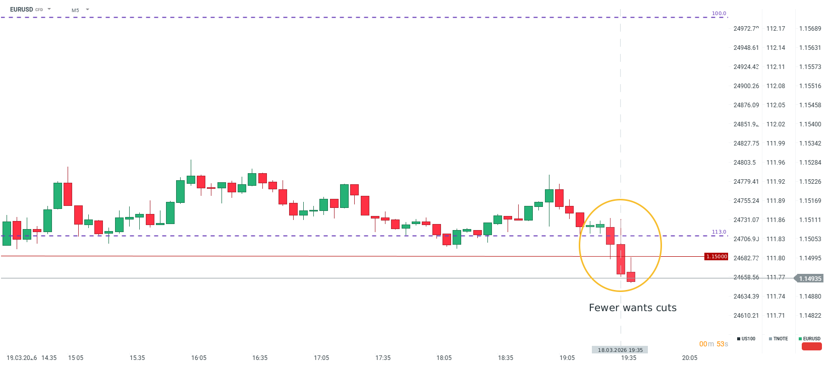 Několik mírně jestřábích komentářů vedlo k výraznějšímu poklesu EURUSD pod 1,150.