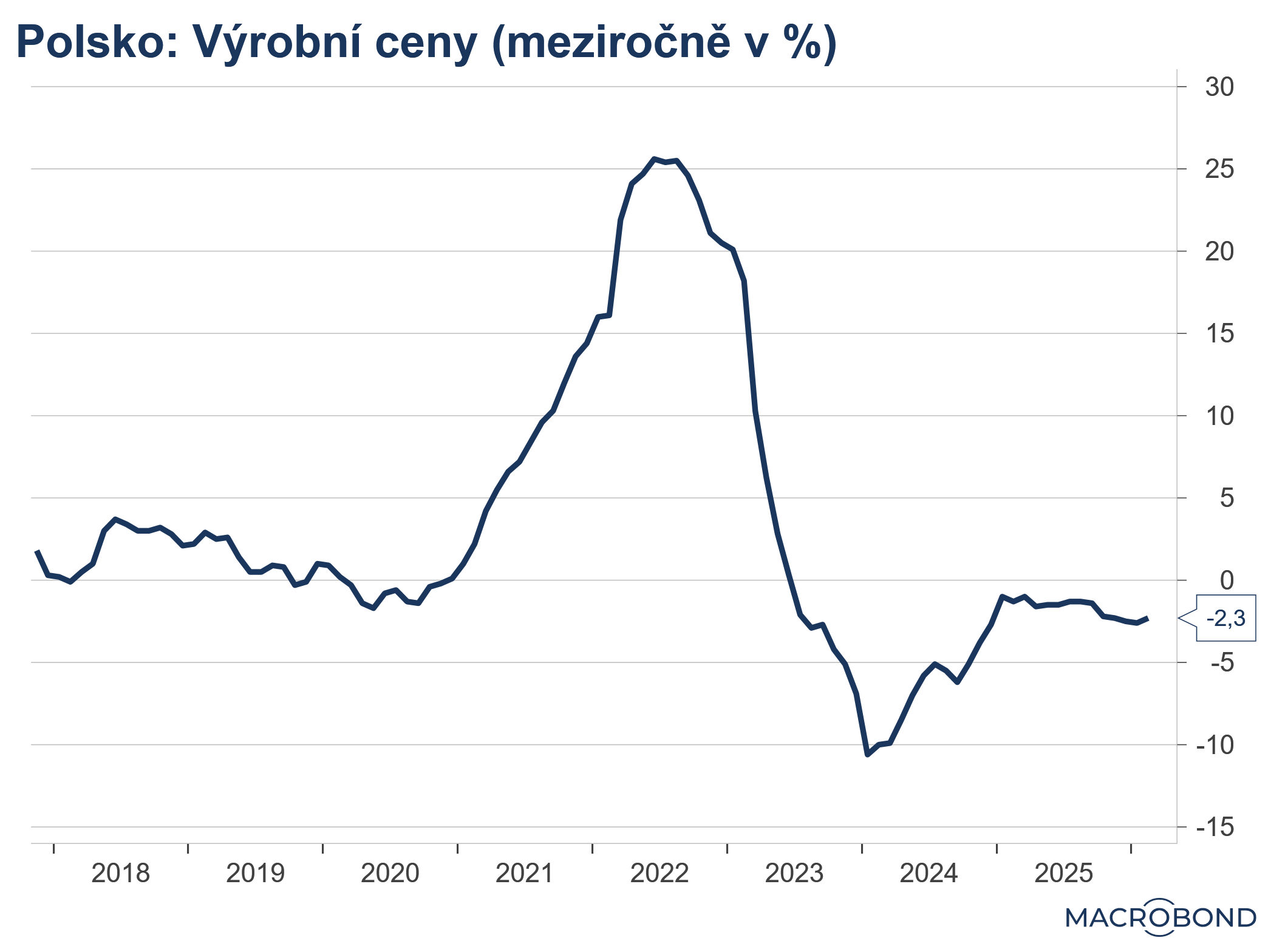 Výrobní ceny v Polsku pokračují v deflačním trendu
