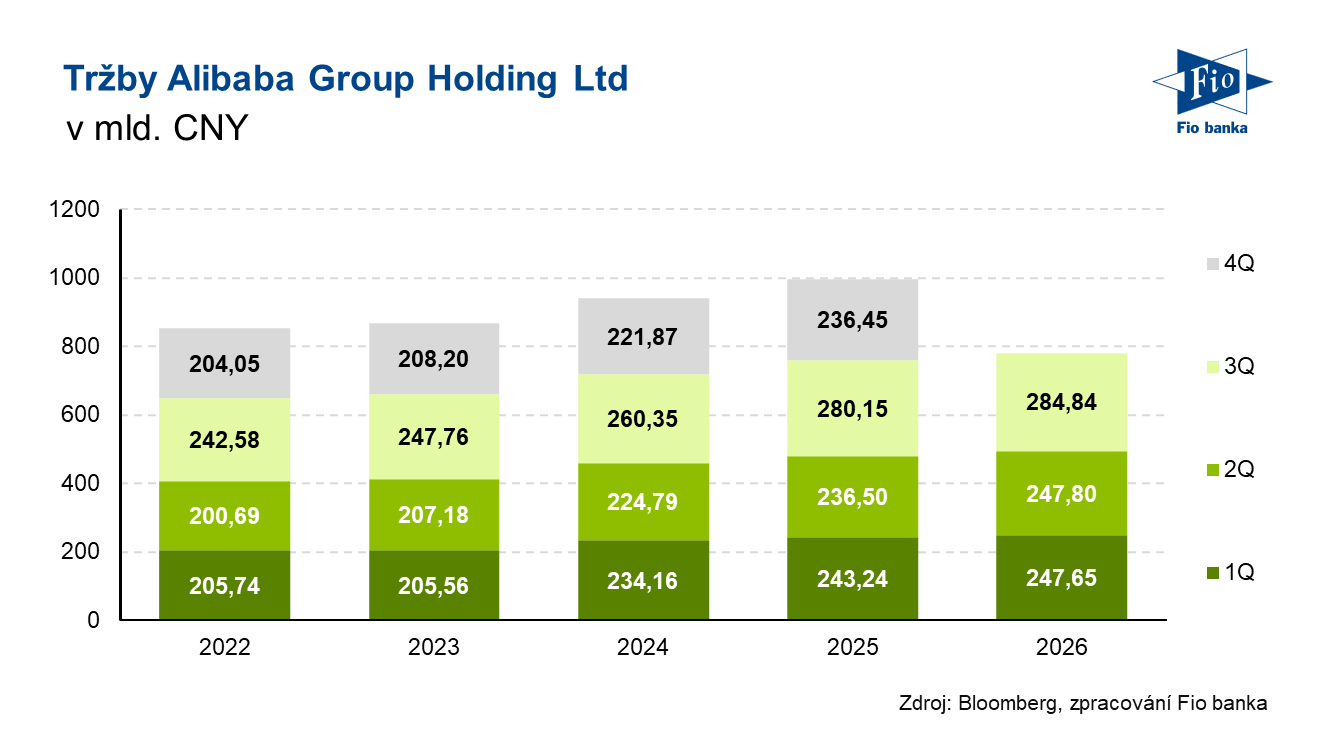 Klíčová slova: ADR | Bloomberg | Certifikát | Dividendový výnos | Investice | P/E | Platforma | Pozice | Ukazatel | Výnos | USD | Byznys | Zisk | Výsledky | EPS | Banka | Fio banka | Cena | Fio | Cílová cena | EBITDA | Tržby | Alibaba | Kapitalizace | Konsensus | CNY | Čistý zisk | Alibaba Group | Generální ředitel | Hospodaření | Výsledky hospodaření | Ukazatele | Alibaba Group Holding | Pokles | Zisk EBITDA | Finanční ředitel | Meziroční růst | BABA | FCF | Vývoj | Tržby společnosti | Růst | Ekonomické ukazatele | E-commerce | Umělá inteligence | Očištěný čistý zisk | Umělé inteligence | Vedení společnosti | Růst tržeb | WU | Silný růst | AI | Společnosti | Rychlý růst | Společnost | Výsledky společnosti | 3М | Alibaba (BABA) | Sebevědomí | Nejhorší výsledek | Komentář vedení | Holding | Oblasti umělé inteligence | Technologický gigant | Čínský technologický gigant | Oblasti likvidity | Cloudové služby | Služby | Fio banka, a.s. | Michal Bárta | ADR Alibaba | Doručování | Akče | Group | Volné hotovostní toky | Hotovostní toky | Čipy | AI a cloud |