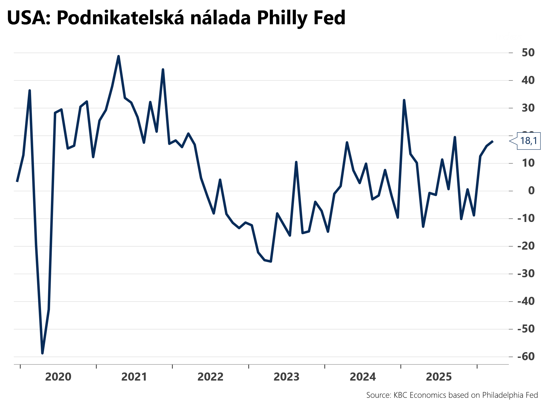 Index podnikatelské nálady podle filadelfského Fedu pro září 2025 vzrostl na 23,2 bodu, což je výrazné zlepšení oproti srpnové hodnotě -0,3 bodu. Tento výsledek překonal očekávání trhu, které se pohybovalo na úrovni 1,7 bodu.