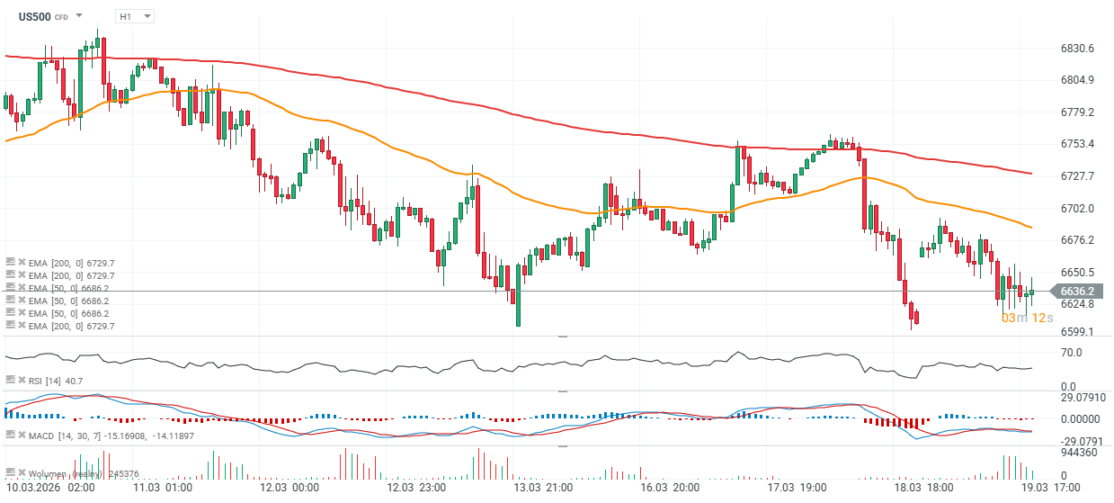 Futures na S&P 500 (US500) klesají téměř o 0,5 %, zatímco futures na ropu Brent (OIL) rostou o více než 1 % k úrovni kolem 92 USD za barel. To platí navzdory komentářům Donalda Trumpa, které naznačují postupnou deeskalaci vojenských akcí a možný brzký konec konfliktu s Íránem. Americký prezident uvedl, že USA zbývá zničit už jen několik cílů. Únorový údaj o inflaci CPI v USA dopadl v souladu s očekáváním na 2,4 % meziročně, trh však data z velké části ignoroval a zprávu vnímal jako poněkud „zastaralou“ vzhledem k eskalující situaci na Blízkém východě. -