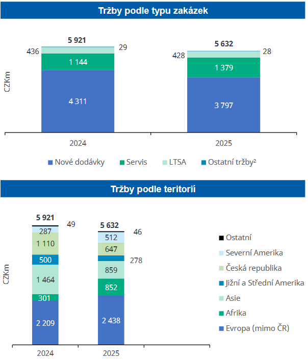 Hlavní projekty, které přispívaly k tržbám v roce 2025, byly v Polsku, Botswaně, České republice, USA, Saúdské Arábii, Finsku či Dánsku.