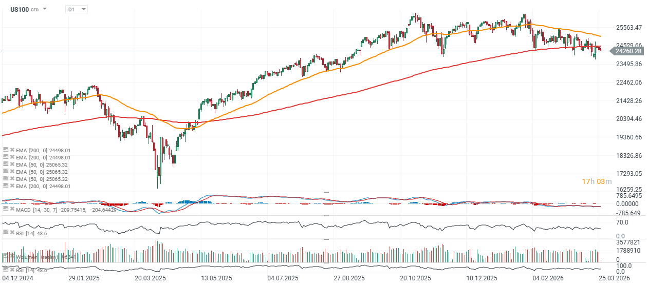 Index NASDAQ 100 (CME) (NQ) - Intradenní výhled 26.3.2026