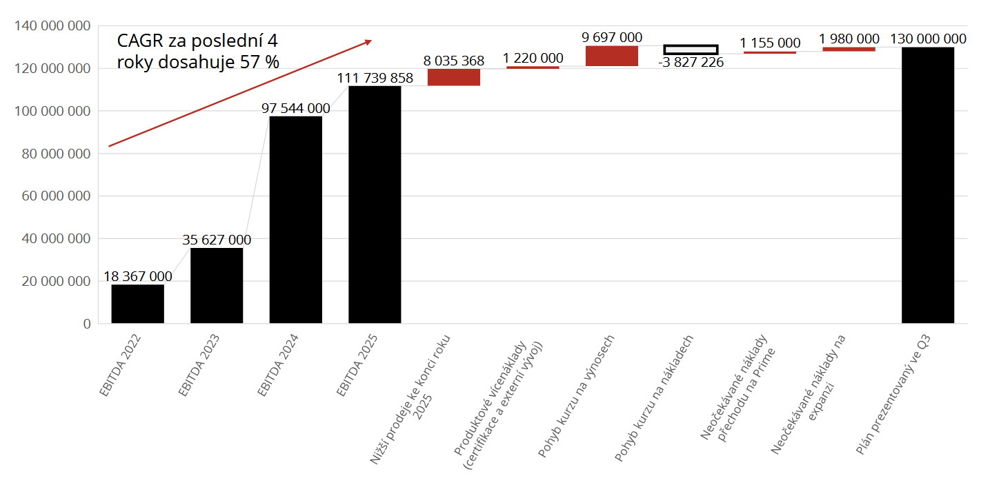 Společnost dále zaznamenala zvýšené náklady kvůli procesu certifikace nových produktů, které budou do komerčního prodeje uvedeny v roce 2026.