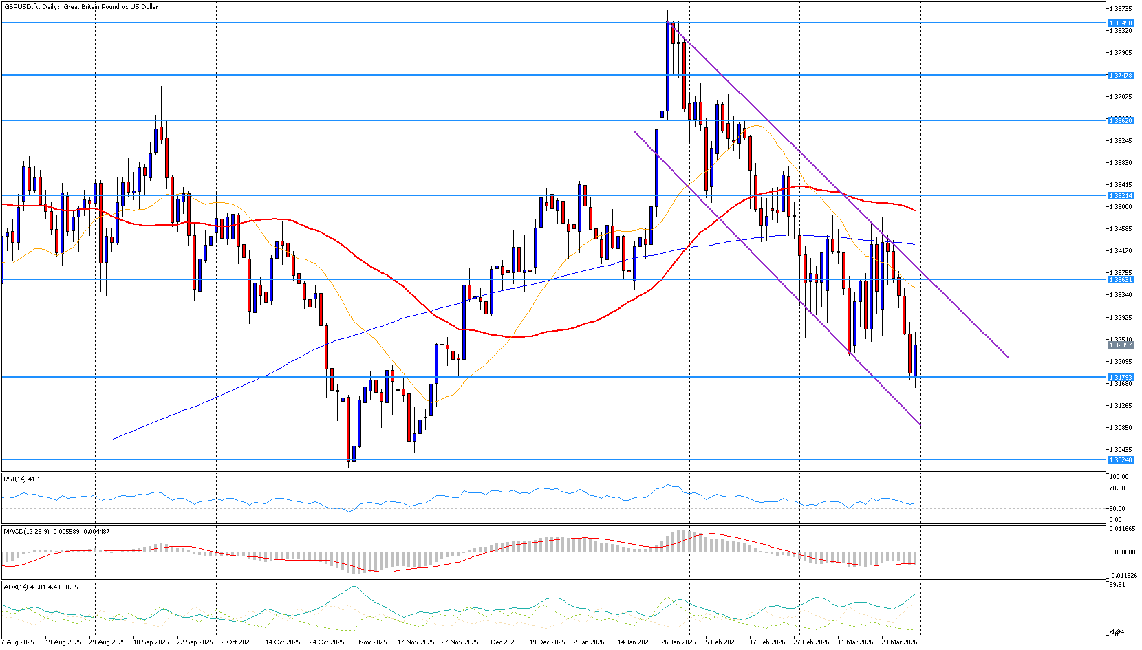 Měnový pár GBP/USD přerušil pětidenní sérii poklesů v blízkosti čtyřměsíčního minima 1,3158 a aktuálně se snaží stabilizovat nad úrovní 1,3200. K mírnému oživení přispěly zprávy o možném zmírnění geopolitického napětí, konkrétně úvahy prezidenta Donald Trump o ukončení vojenských operací proti Íránu. Tento faktor podpořil poptávku po rizikovějších aktivech včetně britské libry. Navzdory krátkodobému odrazu však zůstává celkový technický obraz křehký. Indikátory momenta zatím nepotvrzují silnější obrat – RSI se drží jen mírně nad přeprodanou zónou a stochastika stále nenaznačuje jasné dno. To znamená, že kupci zatím nemají plnou kontrolu a trh zůstává zranitelný vůči dalším výprodejům. Na straně poklesu bude klíčové sledovat úroveň 1,3140. Její prolomení by otevřelo prostor pro test silné podpory v pásmu 1,3000–1,3055. Pokud by ani tato oblast neudržela cenu, další cíl leží poblíž 1,2870, což představuje významnou historickou zónu z počátku roku 2025. Naopak pro potvrzení stabilizace musí býci udržet cenu nad 1,3200. V takovém případě by se pár mohl pokusit o růst směrem k trendové linii odporu kolem 1,3335. Ještě důležitější bariérou je oblast 1,3440, kde se nachází 200denní klouzavý průměr – právě tato úroveň v minulosti zastavila předchozí pokusy o oživení. Její překonání by výrazně zlepšilo krátkodobý výhled a otevřelo cestu k 1,3480. Celkově lze říci, že trh sice vykazuje první známky stabilizace, ale medvědí tlak zůstává dominantní. Bez jasného návratu nad 1,3200 a následného průlomu klíčových rezistencí zůstává riziko dalšího poklesu stále vysoké.