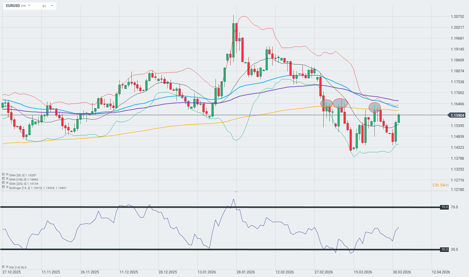 Březnová data PMI z evropského zpracovatelského průmyslu přinesla převážně pozitivní překvapení, i když celkový obrázek zůstává smíšený. Eurozóna jako celek vykázala hodnotu 51,6, tedy nad očekáváním i nad úrovní z předchozího měsíce, což signalizuje pokračující růst ve zpracovatelském sektoru. Nejvýraznějším překvapením bylo Švýcarsko, kde index dosáhl 53,3 oproti očekávaným 47,0. Jde o jednu z největších pozitivních odchylek od konsenzu za dlouhou dobu. Německo potvrzuje svou roli motoru evropského průmyslu, když vykázalo 52,2 a jasně překonalo odhady. To naznačuje, že největší ekonomika regionu se dostává z delšího období slabosti.