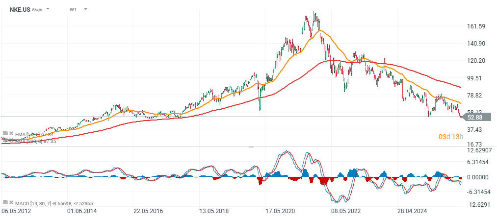 Nike (NKE.US) dnes před uvedením na trh ztrácí téměř 7 %, protože investoři pociťovali zklamání z důvodu chybějících příjmů za 1. čtvrtletí 2024/2025 a zrušení výhledu na celý rok. Společnost také odložila vysoce očekávaný „Den investorů“ naplánovaný na listopad, zatímco se připravuje na nového generálního ředitele. Kvůli blížící se změně se společnost Nike rozhodla stáhnout doporučení FY; nyní chce poskytovat čtvrtletní pokyny „pro zůstatek roku“. -